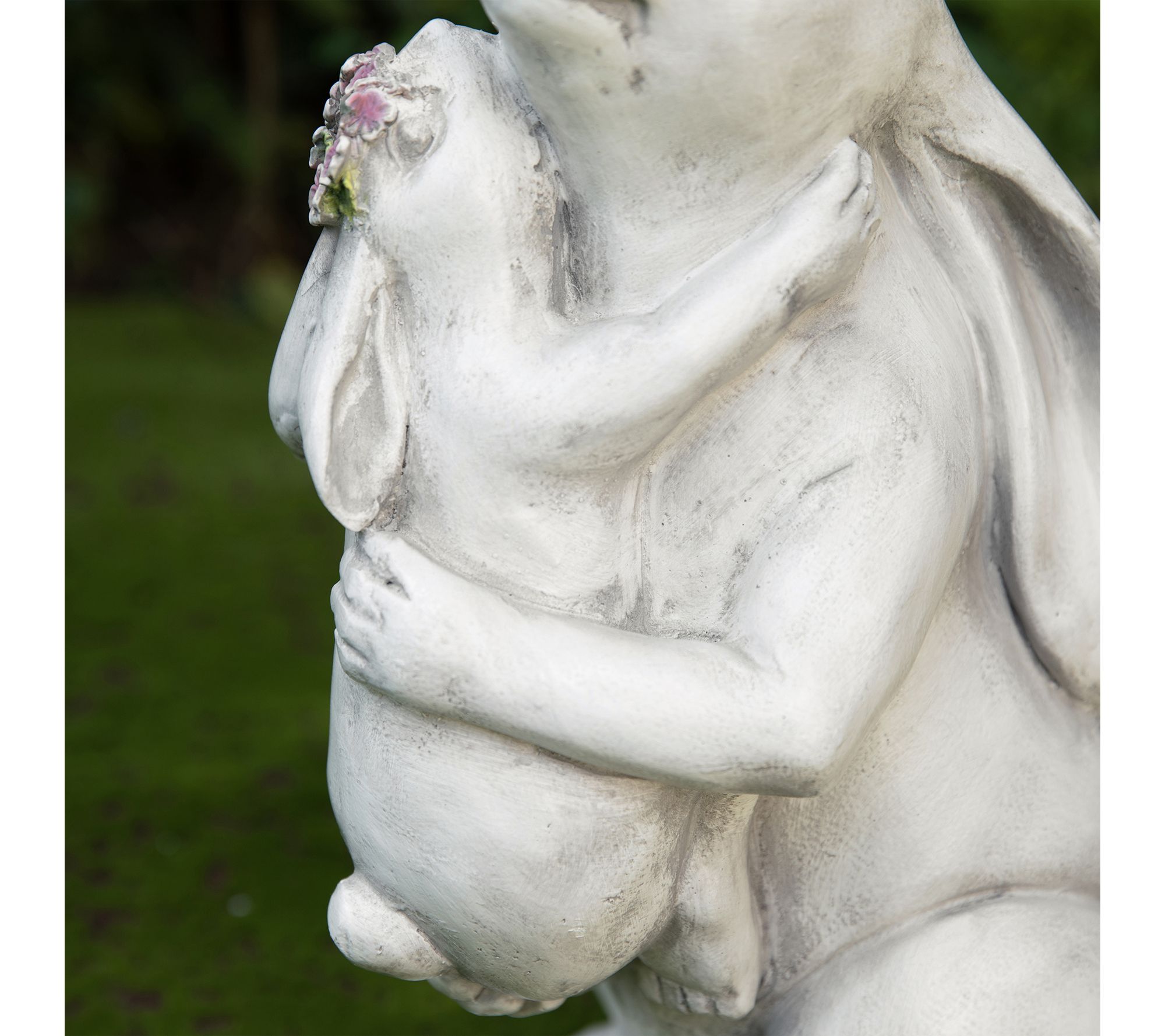• Detailed sculpting features a floral-crowned mother rabbit and baby in a loving embrace