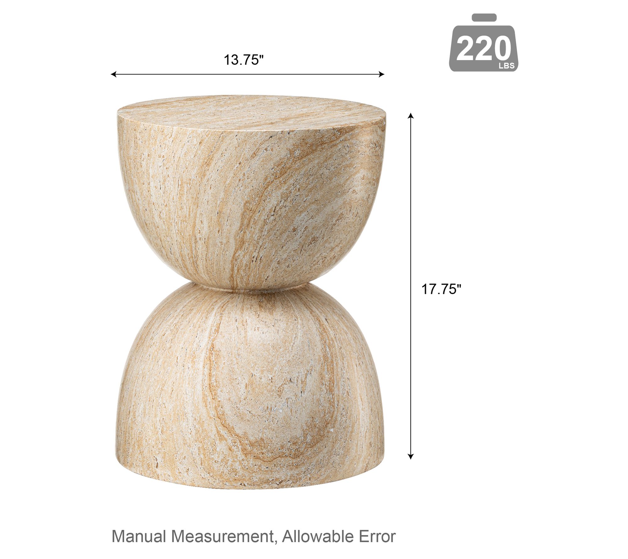 Glitzhome 18" Hourglass Faux Travertine GardenStool / Table