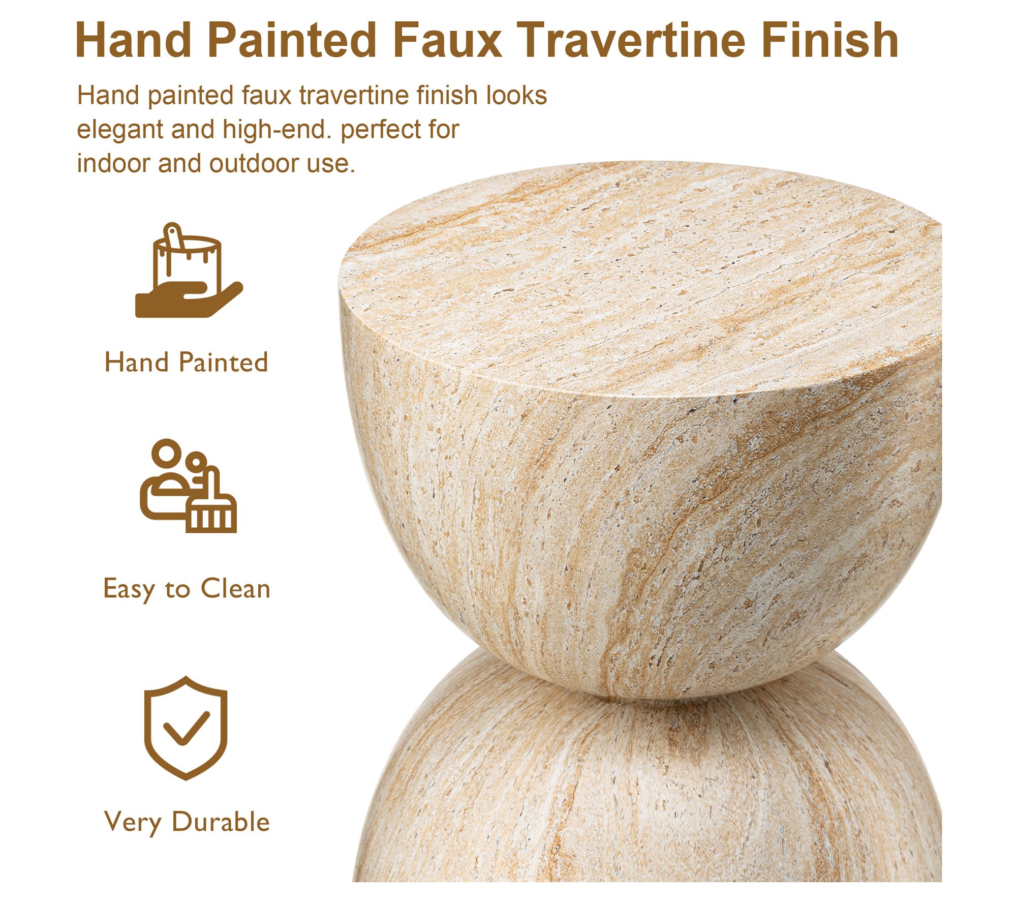 Elevate your outdoor or indoor space with this hourglass-inspired garden stool/table. The faux travertine finish provides a sophisticated touch, while its versatility allows you to use it as a stool, planter stand, or side table. Perfect for enjoying a morning coffee or showcasing your favorite plants. From Glitzhome.