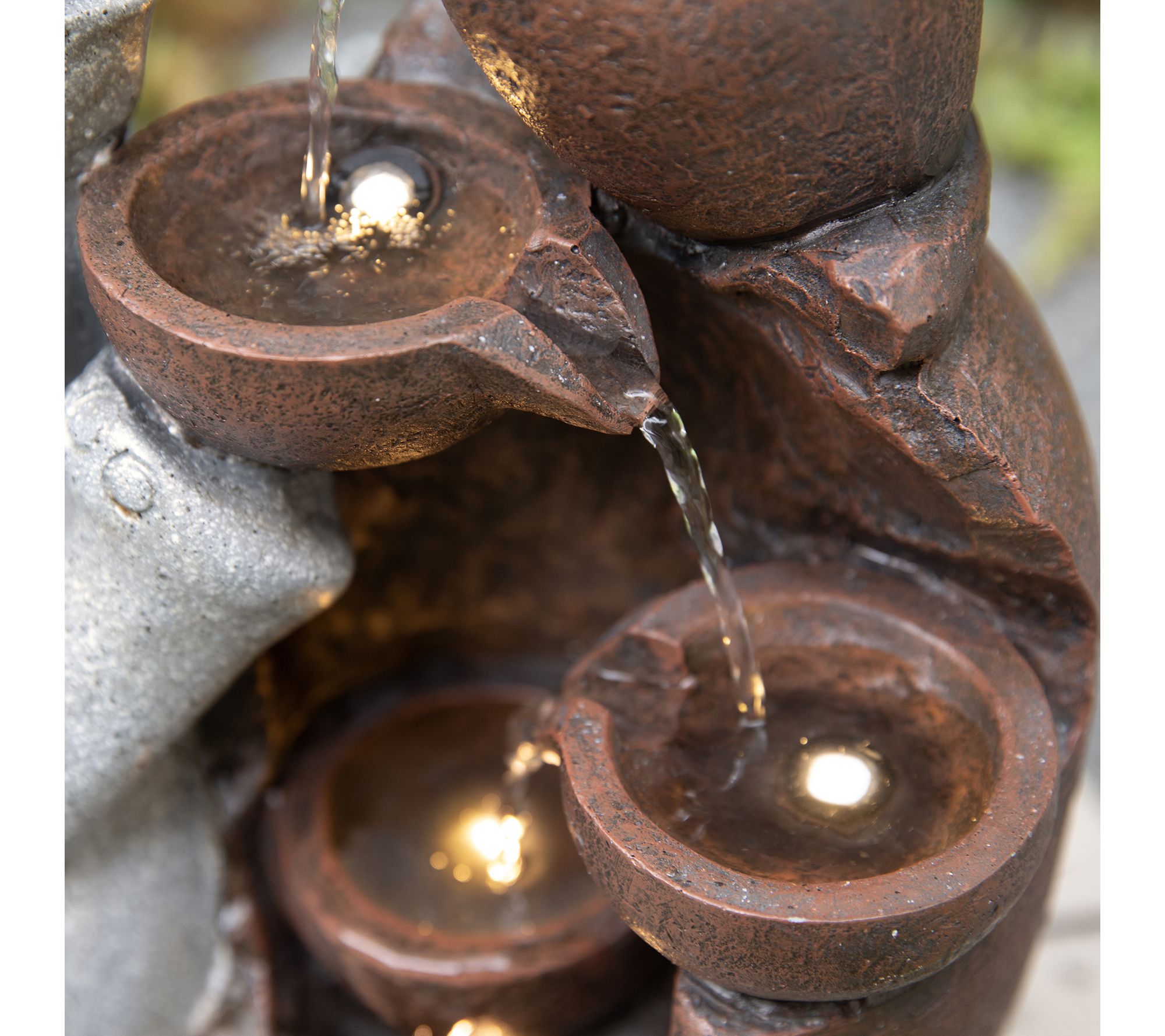 • Warm white LED light illuminates fountain for nighttime enjoyment