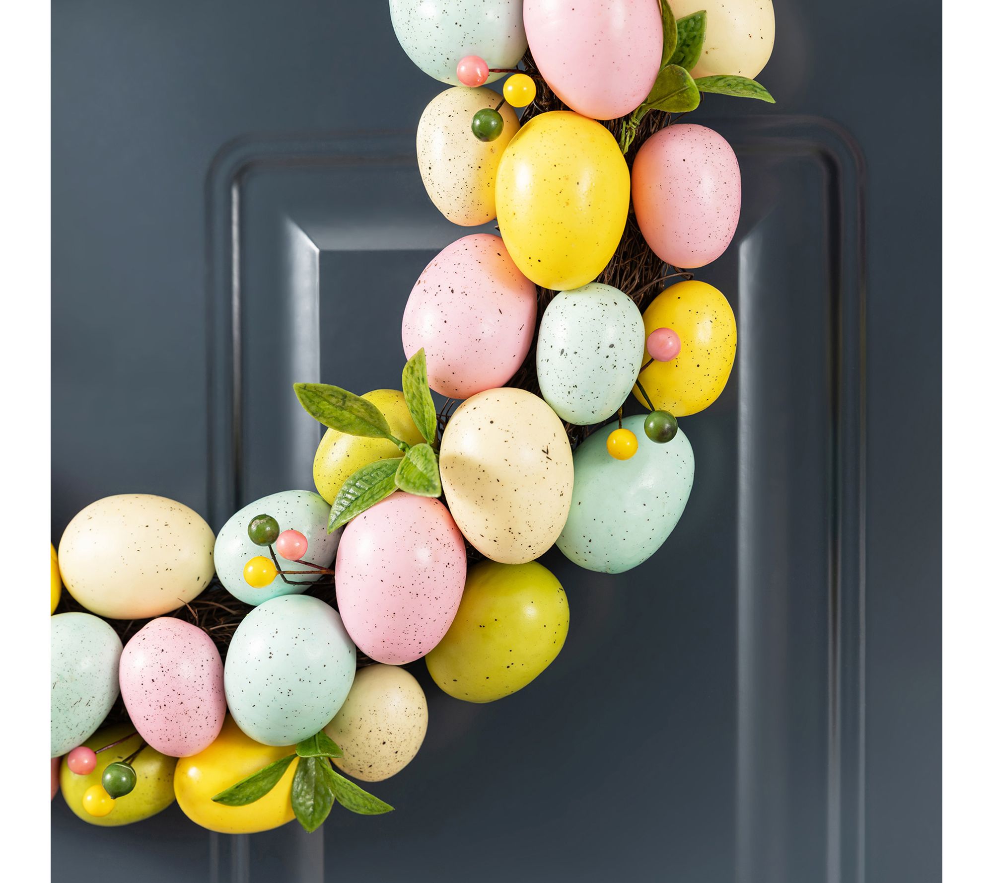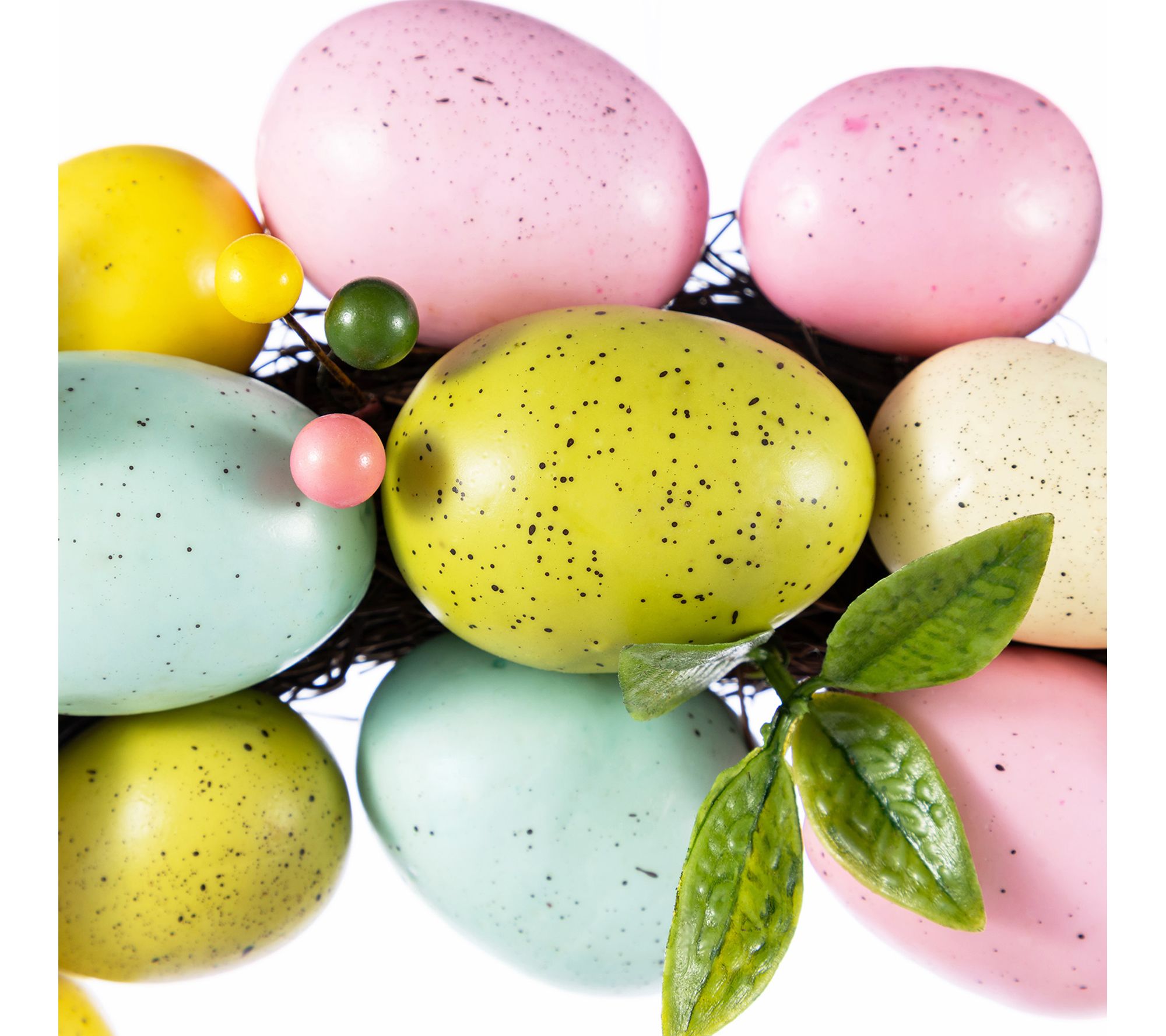• Crafted with a variety of pastel colored Easter eggs for a festive look
