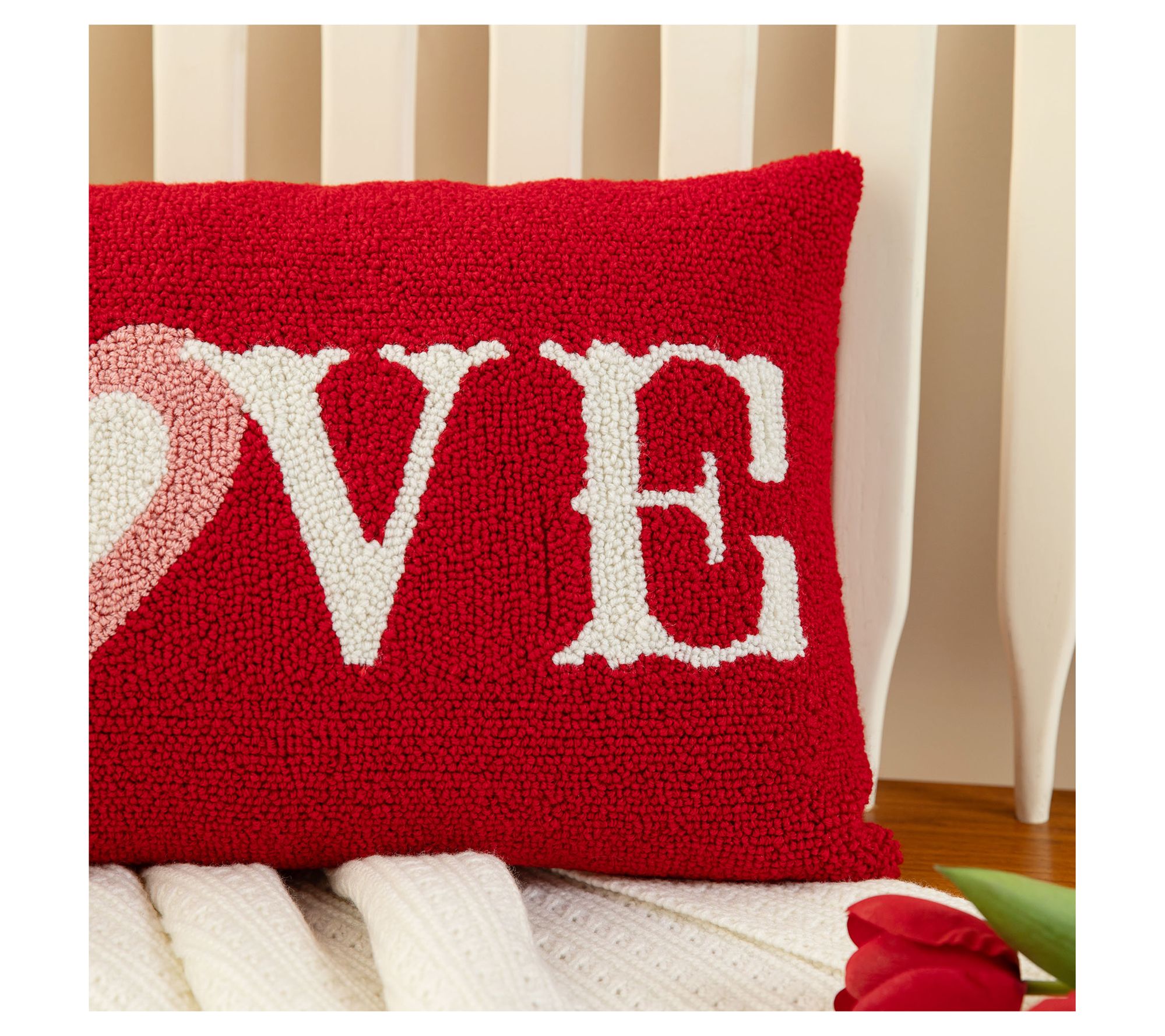 Glitzhome 18"L Valentine's Hooked LOVE Pillow
