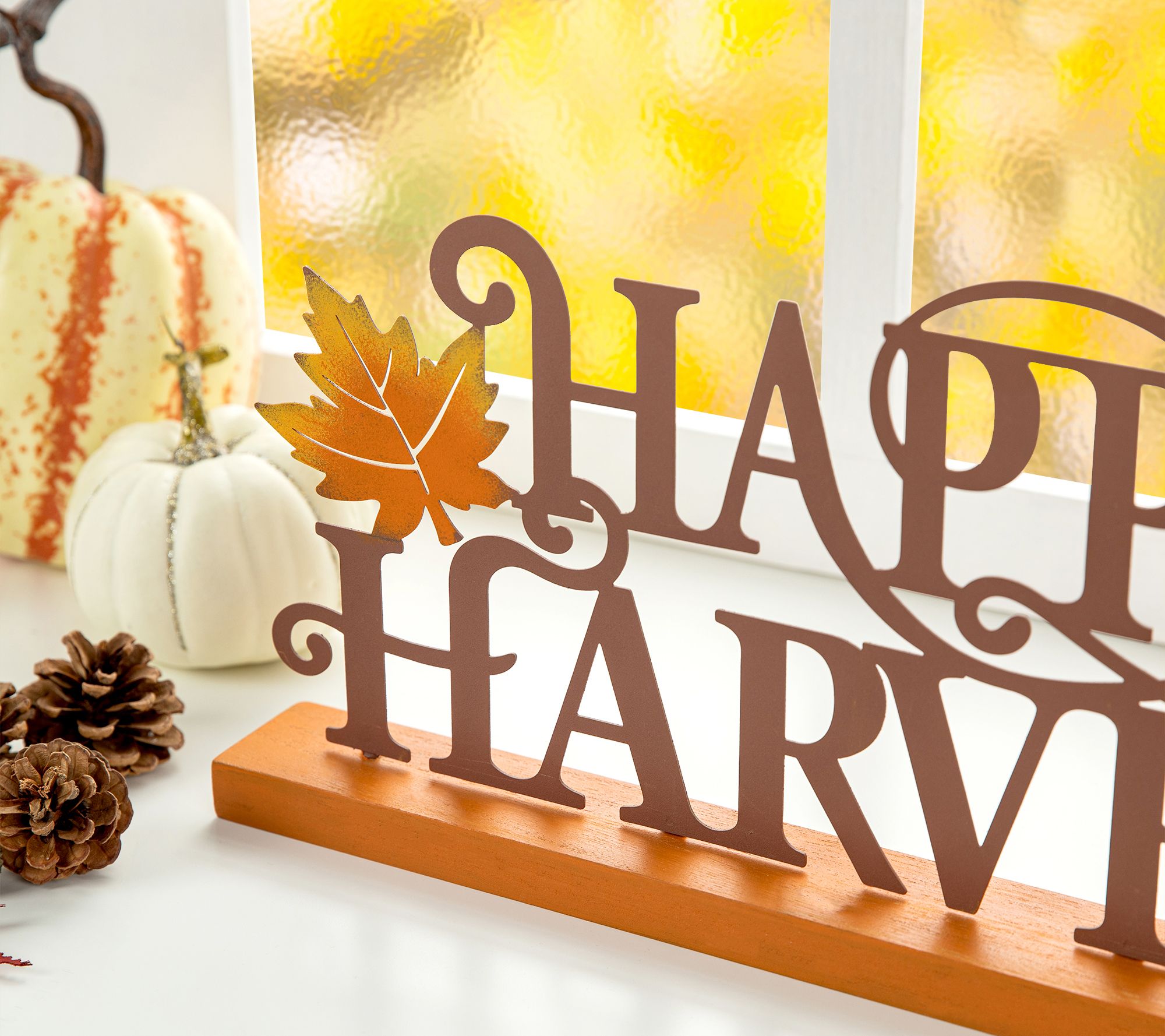 With its harvest message accented by colorful maple leaves, this tabletop decoration is the perfect way to bring a touch of autumn charm to a mantel, entryway, or windowsill. From Glitzhome.