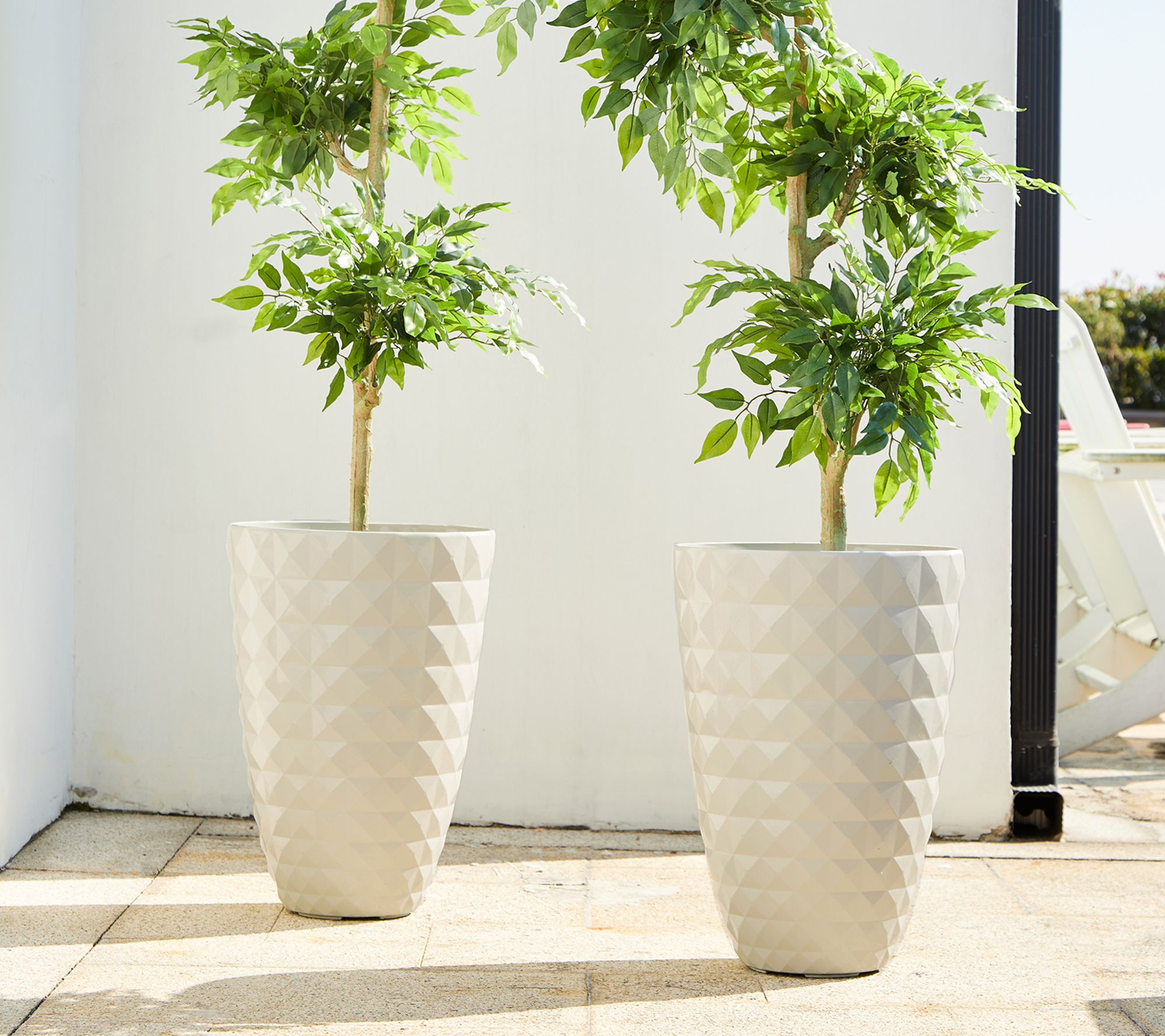 Glitzhome 19.75" Faux Ceramic Diamond TexturedPlanters S/2