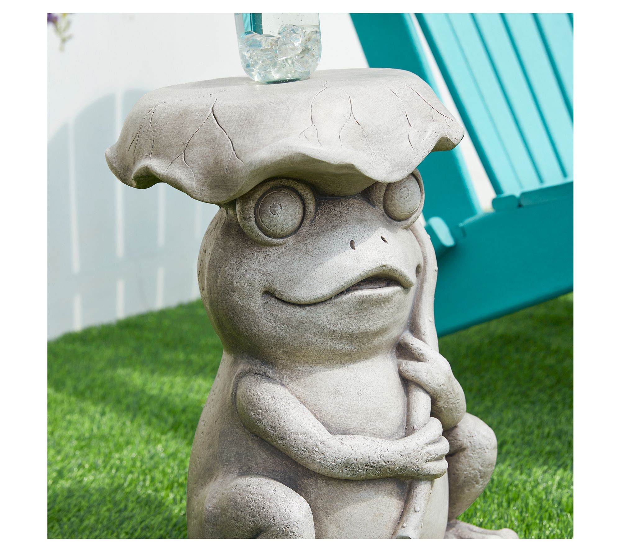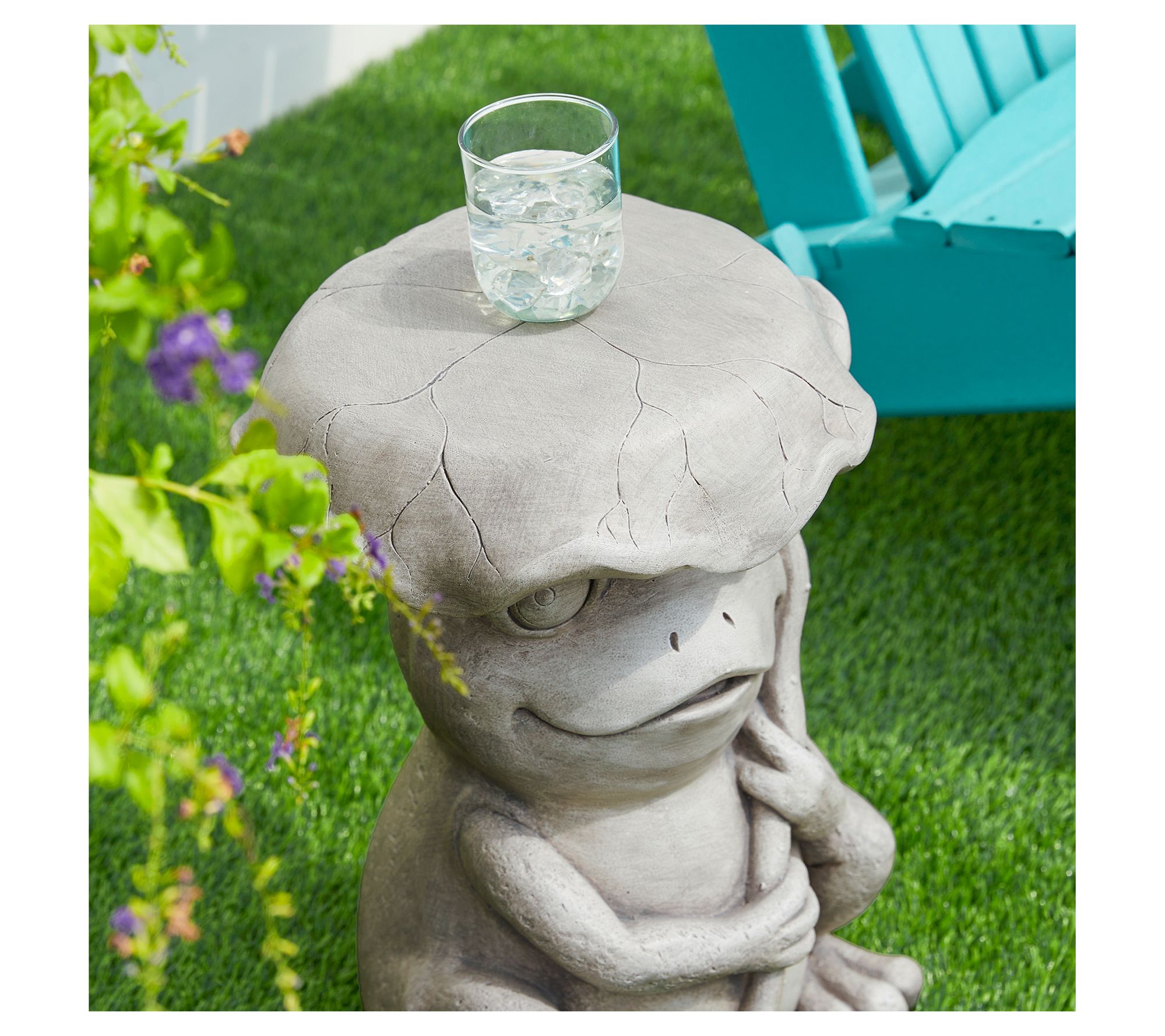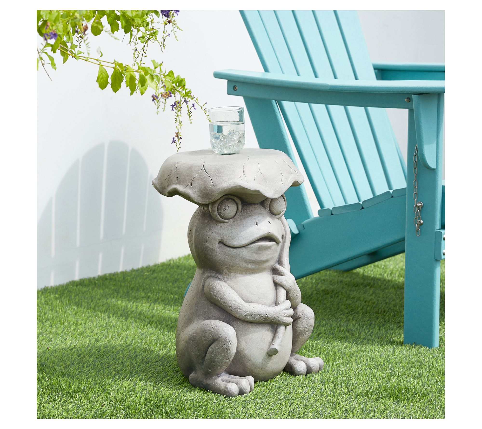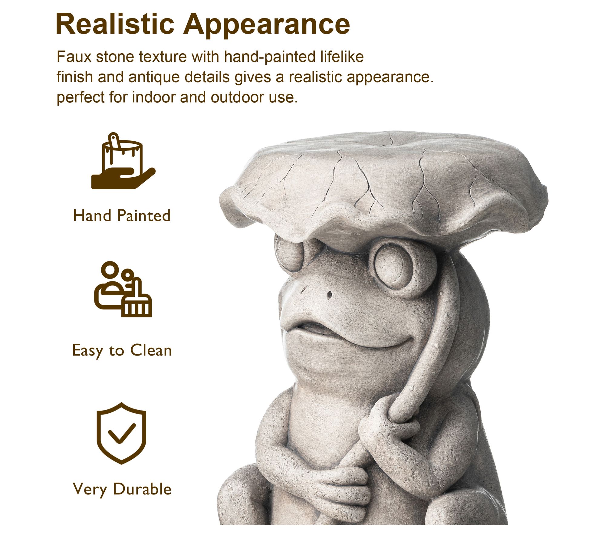 Enhance your indoor or outdoor space with this whimsical and adorable frog garden stool. Featuring a lotus-shaped seat, it boasts a faux-stone texture with artistically painted lifelike finish and antique details. Use it as a spare seat, a planter stand, or an accent table to hold your favorite items. Enjoy good times with this versatile and charming piece. From Glitzhome.