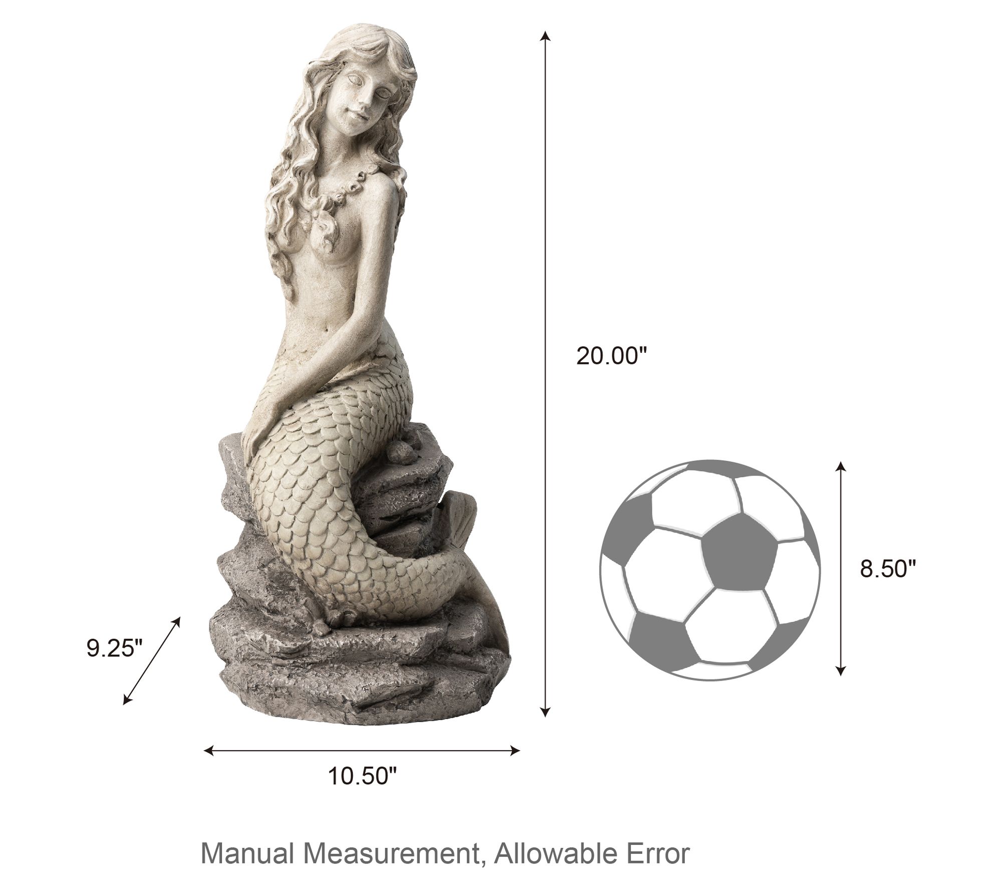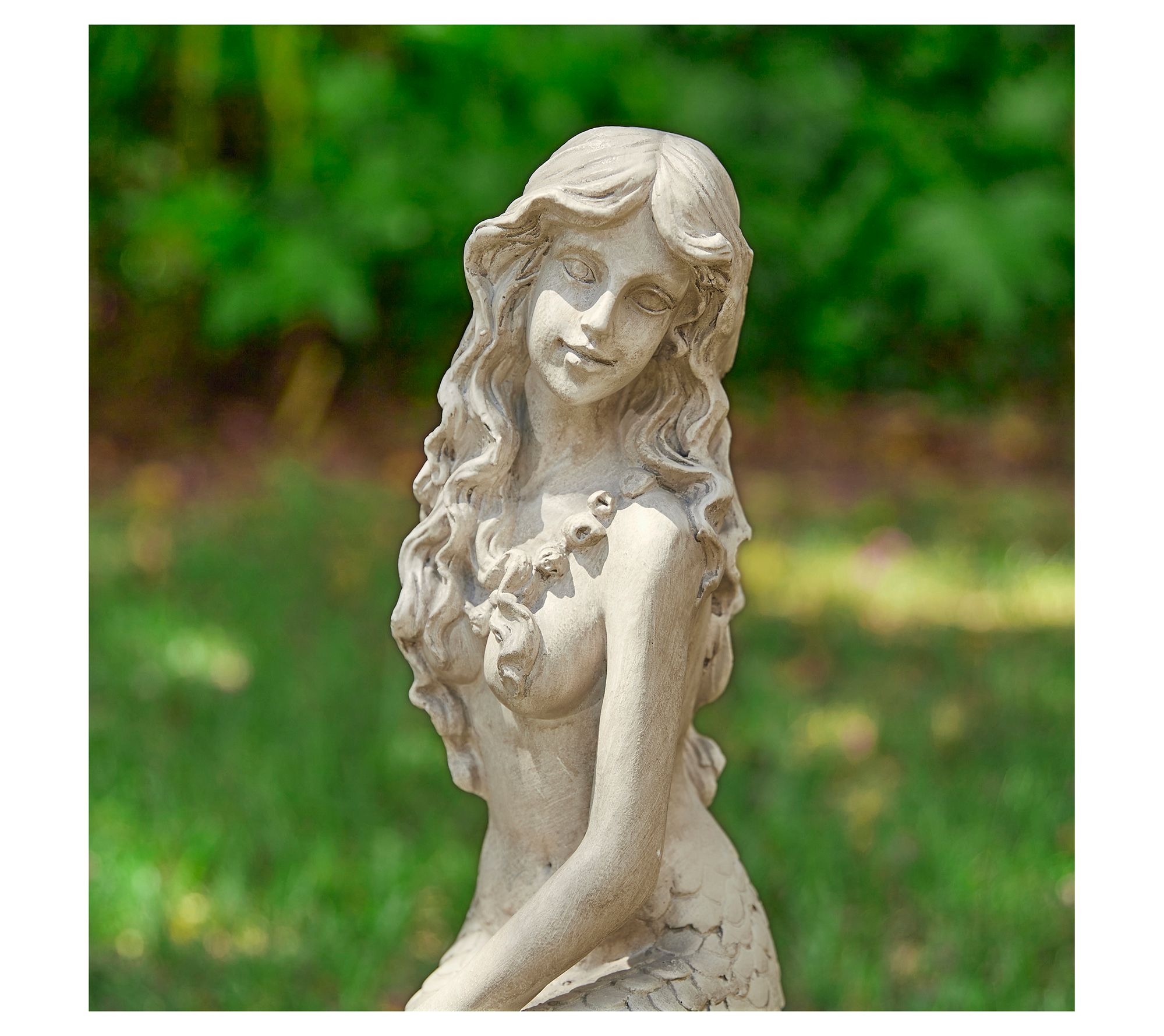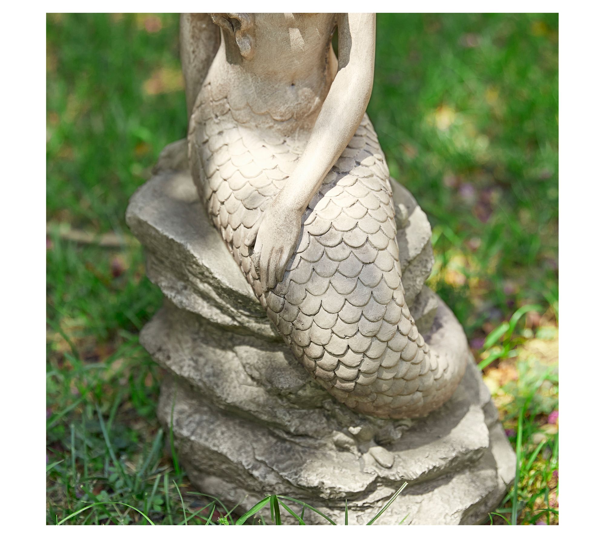 Enhance your home or garden with this classic and elegant mermaid statue. Seated gracefully upon a rock, the mermaid exudes a serene and enchanting aura. Its faux stone texture and artistic antique details make it blend effortlessly into various landscapes, creating a playful ambiance. Perfect for adding a unique touch to your garden, patio, or indoor spaces. From Glitzhome.