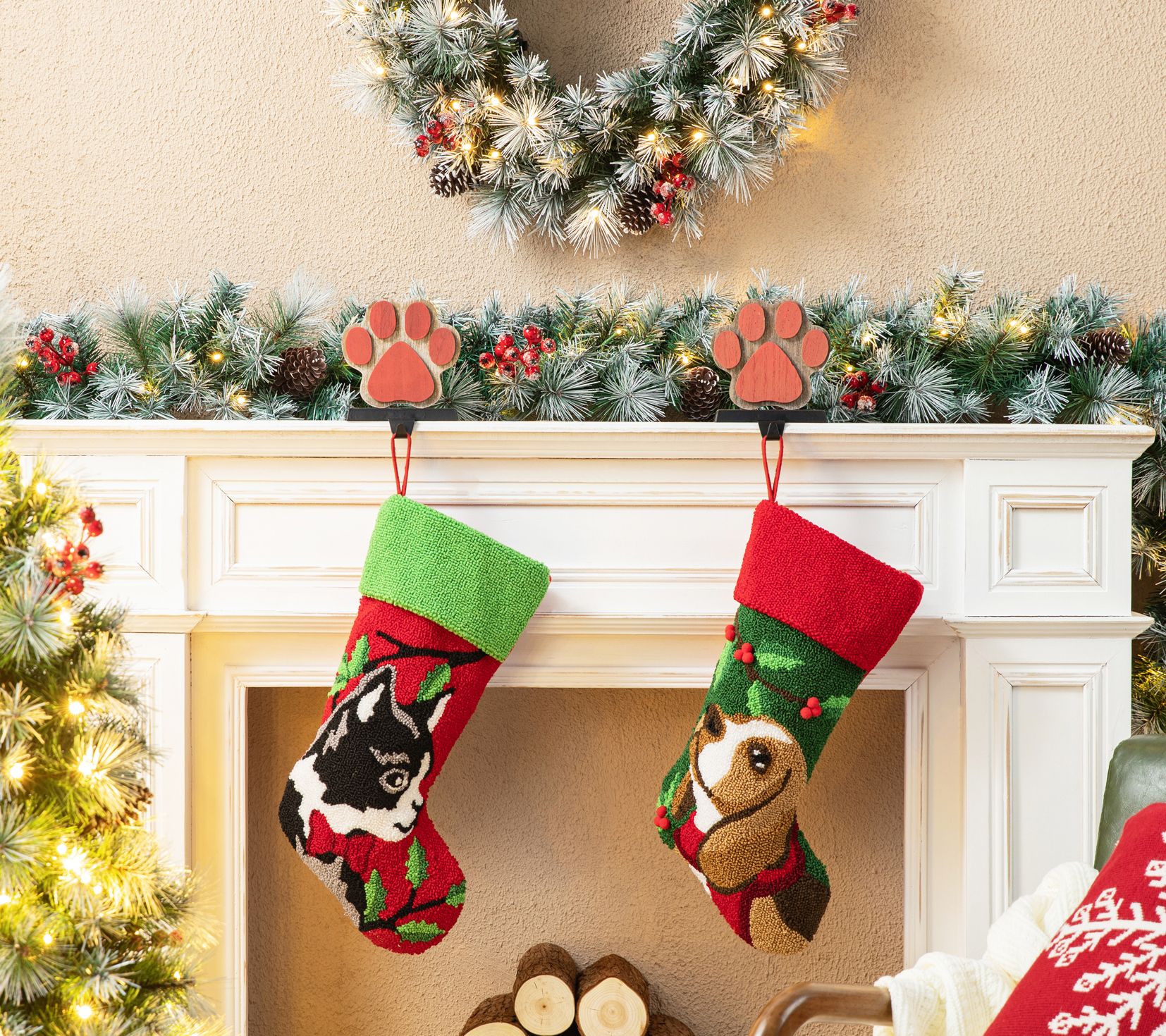 Ready your home for Santa's arrival with this pawsome duo of Christmas stockings that are ready to hang on your wall or mantel. From Glitzhome.