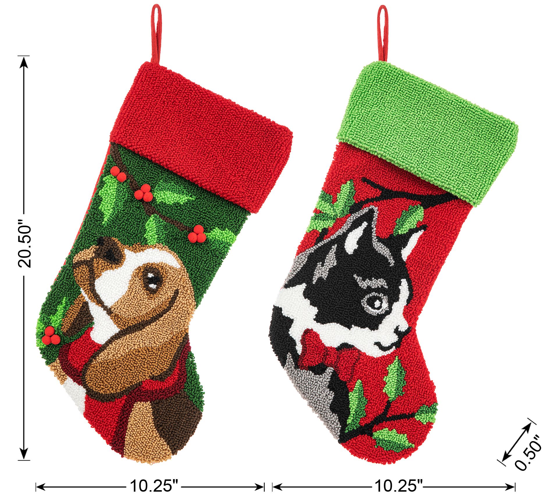 • Includes two cat and dog design stockings