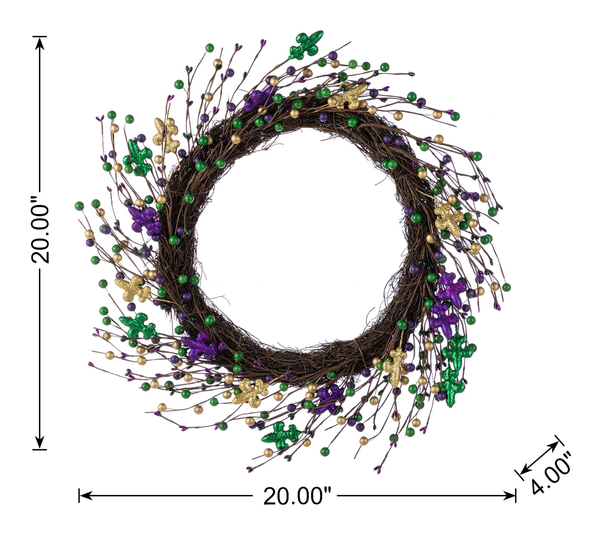 Glitzhome 20"D Mardi Gras Berry & Fleur-de-LisWreath