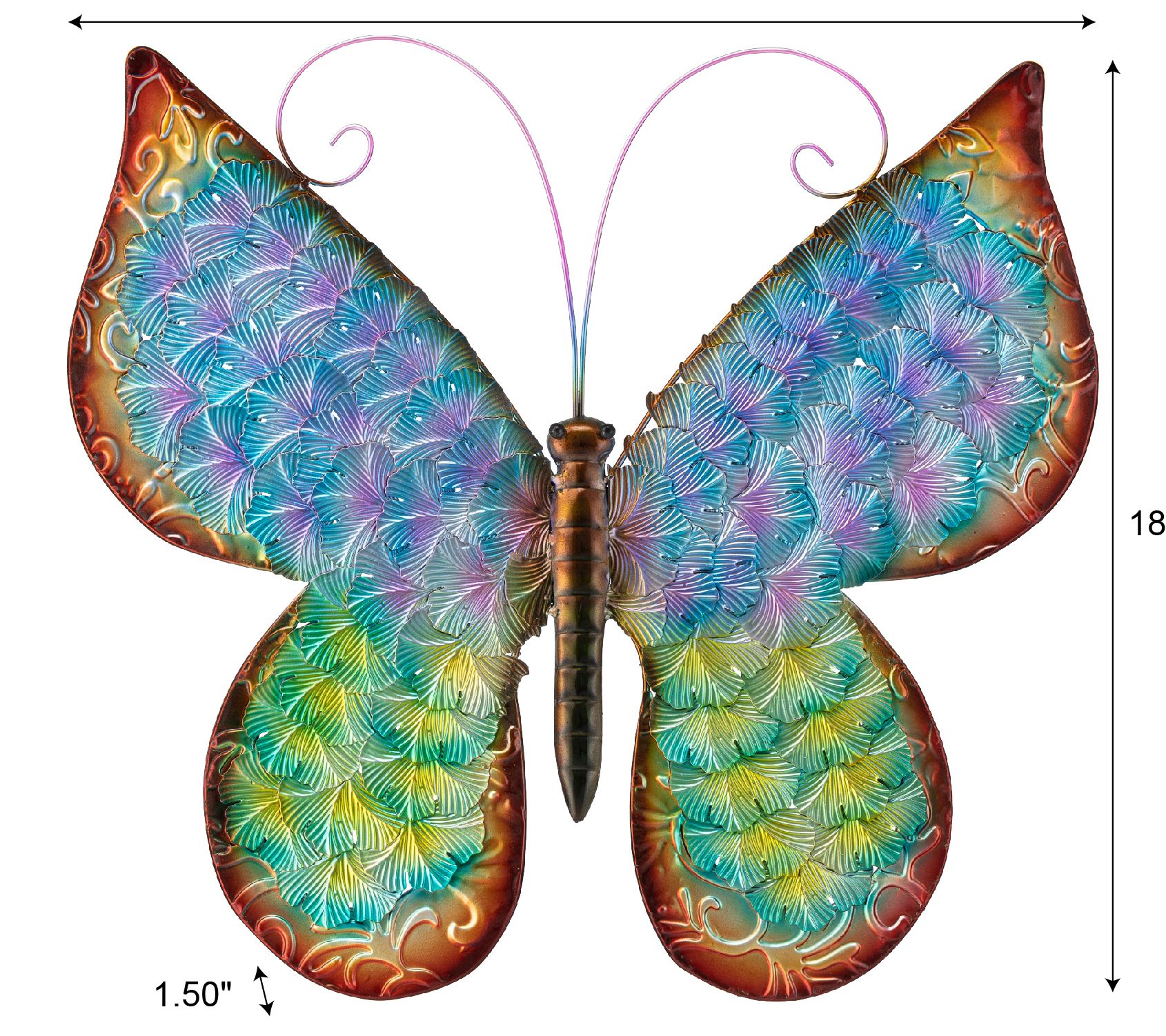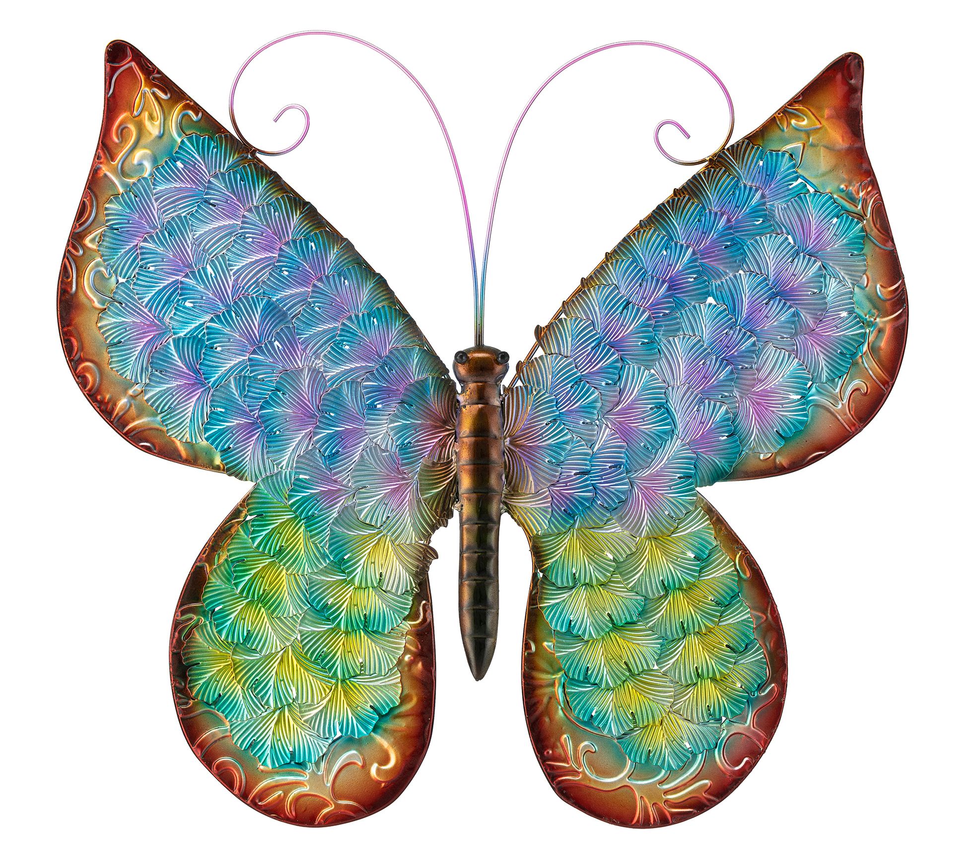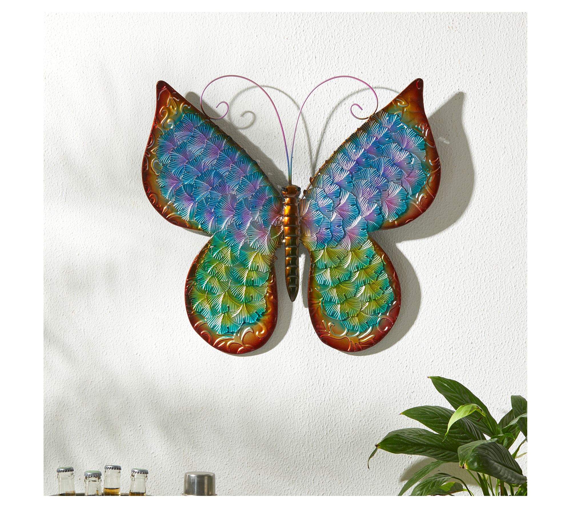 Bring the beauty of nature to your space with this delightful butterfly wall decor. Perfect for livening up any porch, home, or half-sheltered outdoor area, it features vibrant colors and distressed details that create a charming, lifelike embossed texture. From Glitzhome.