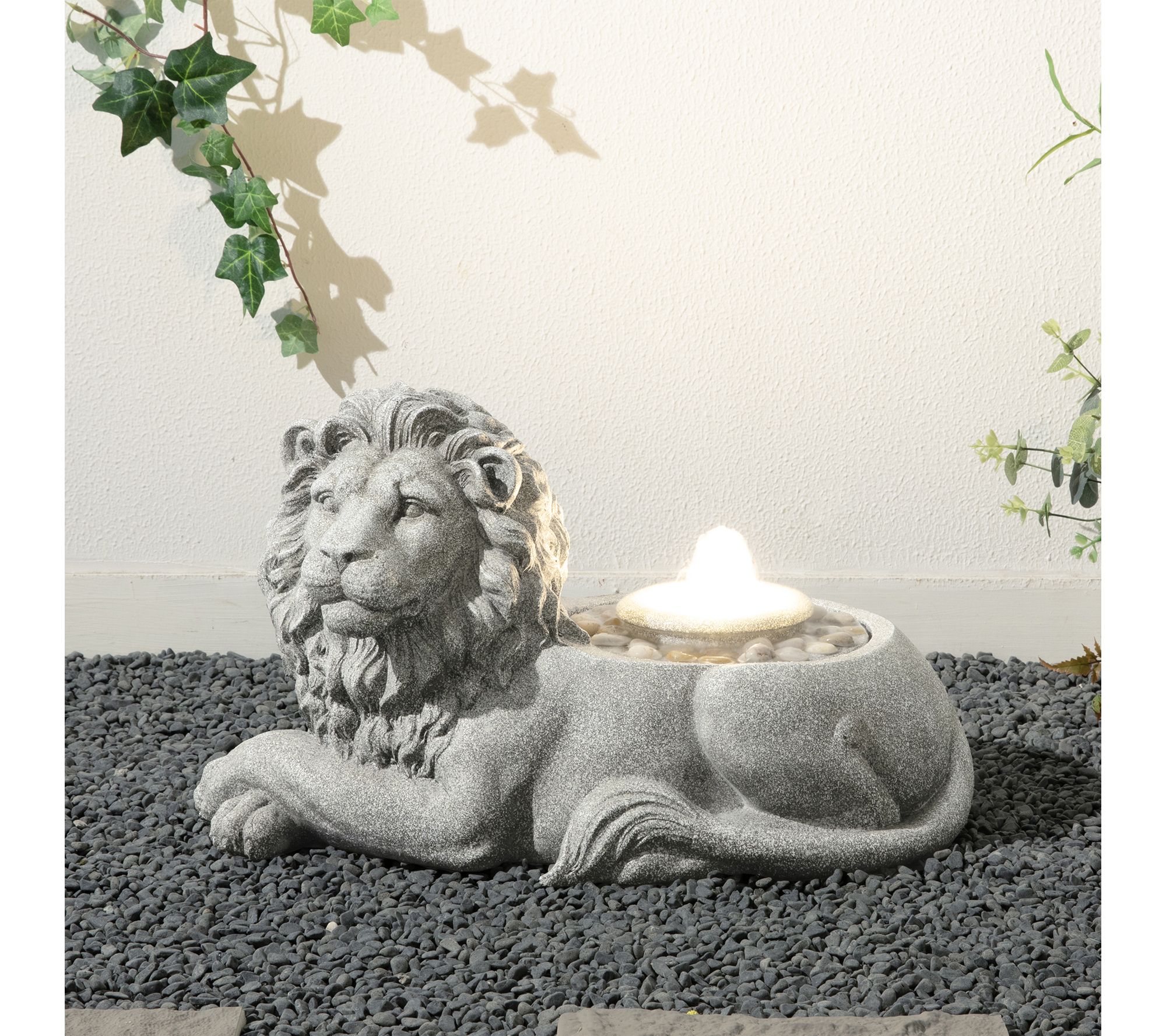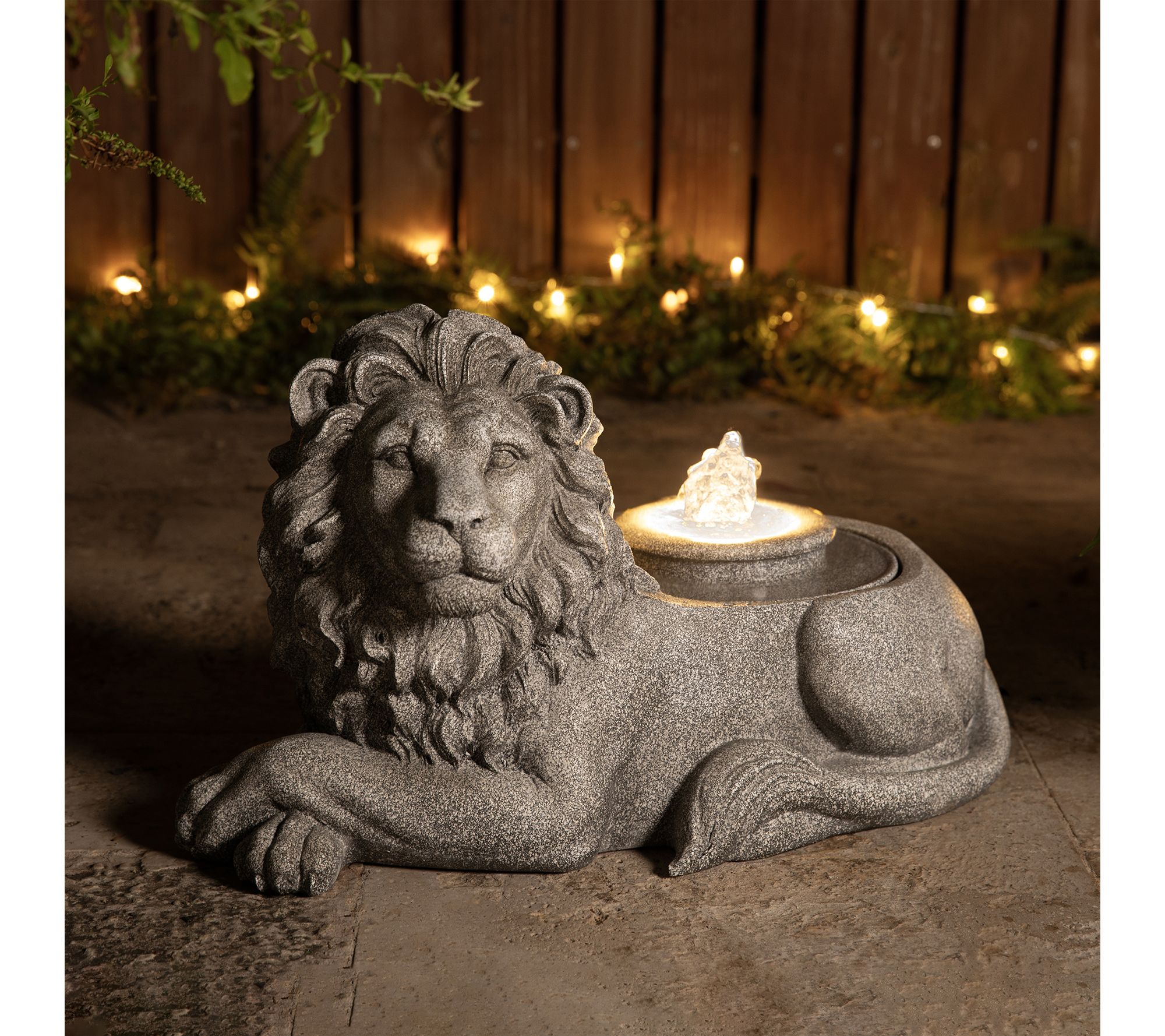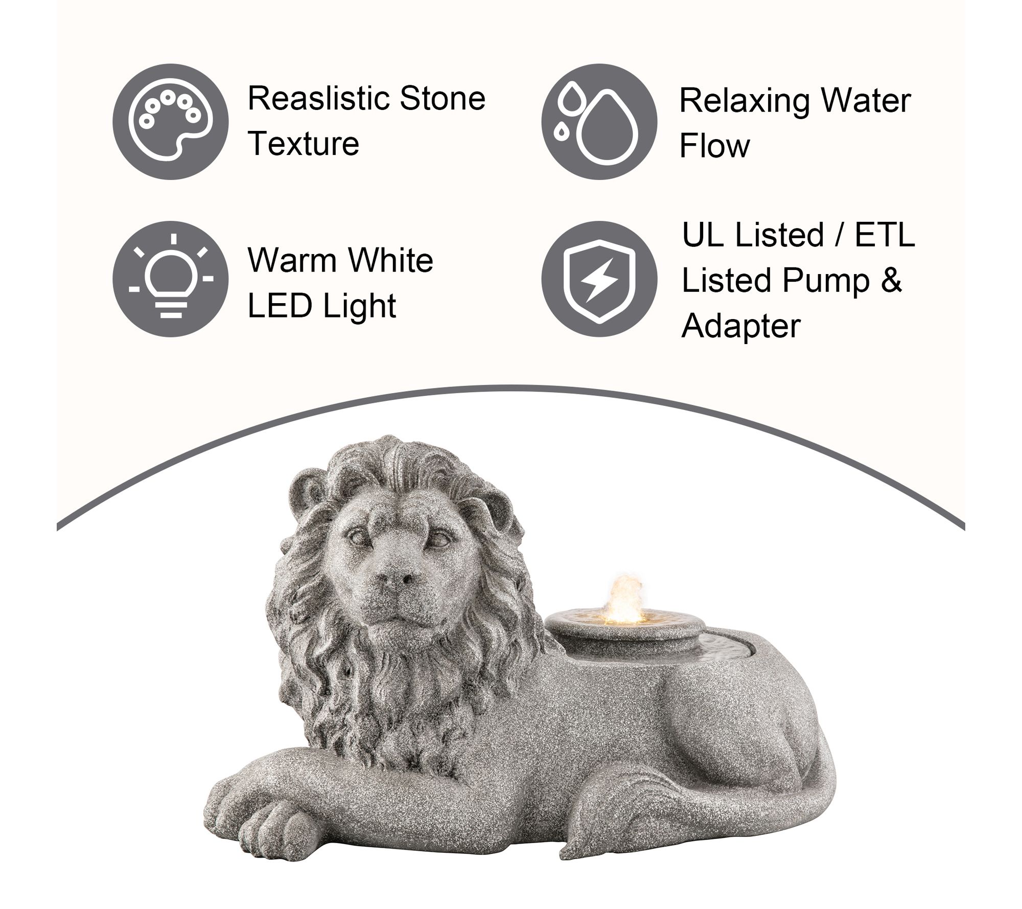 Transform your patio or garden into a peaceful retreat with this Zen-style outdoor fountain. The lying lion sculpture, rich with lifelike texture and intricate detail, pairs with shimmering LED-lit water to create a tranquil atmosphere, perfect for relaxing evenings or alfresco gatherings. From Glitzhome.