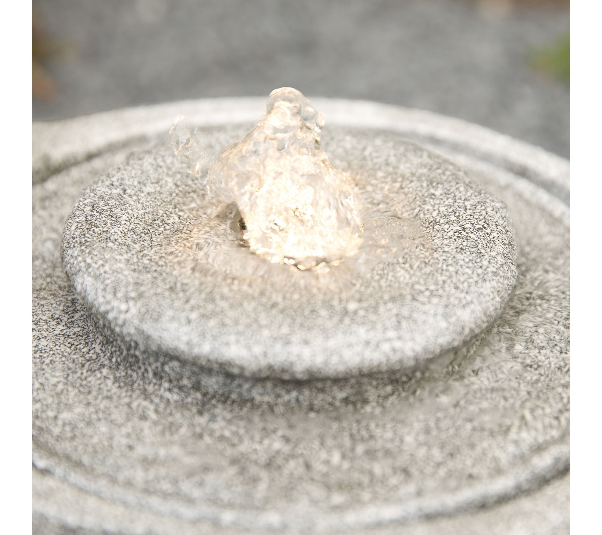 Flowing water shimmers with 2 warm white LED lights for a soothing ambiance