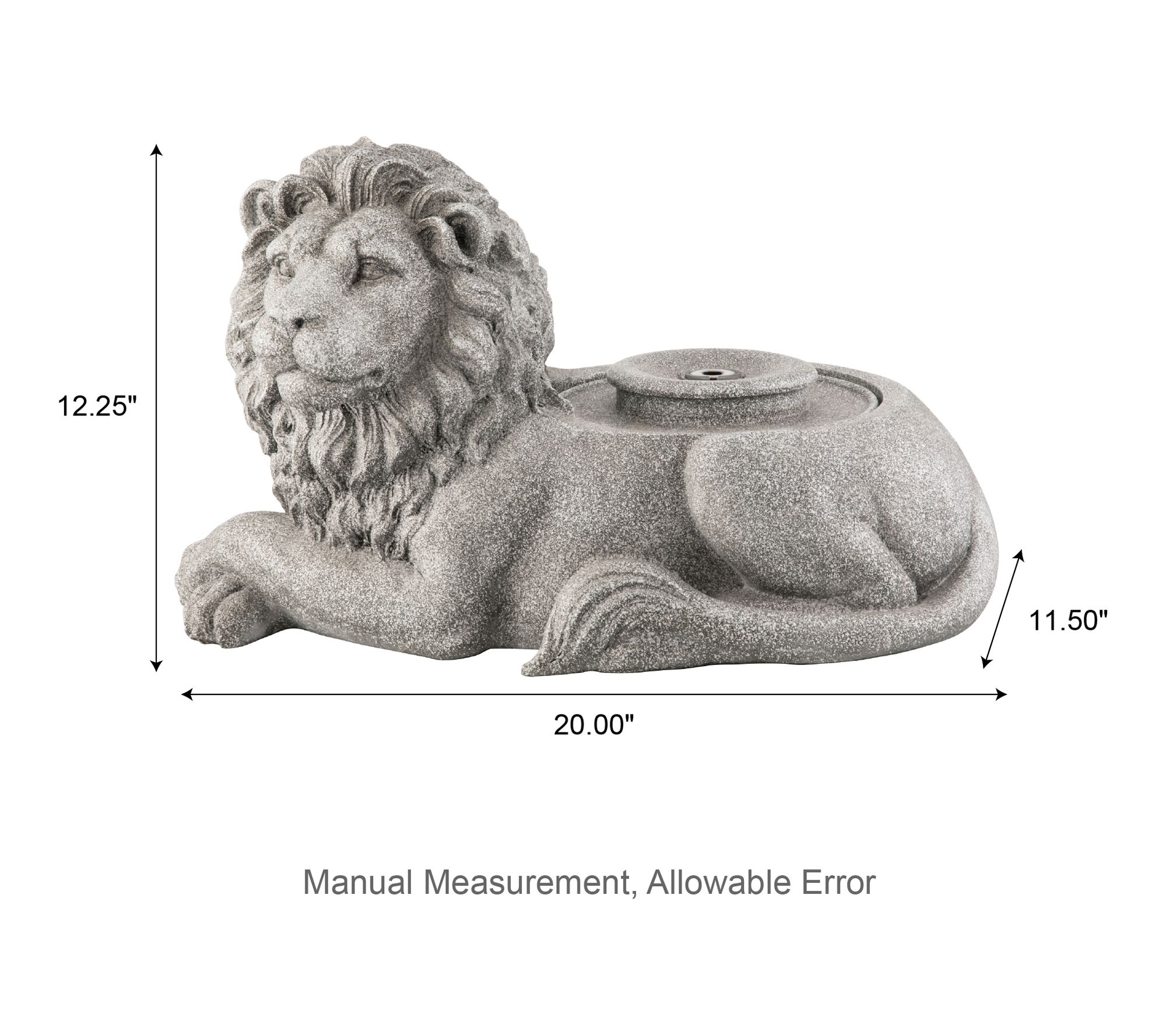 Zen-style lying lion outdoor fountain with textured polyresin and stone powder construction