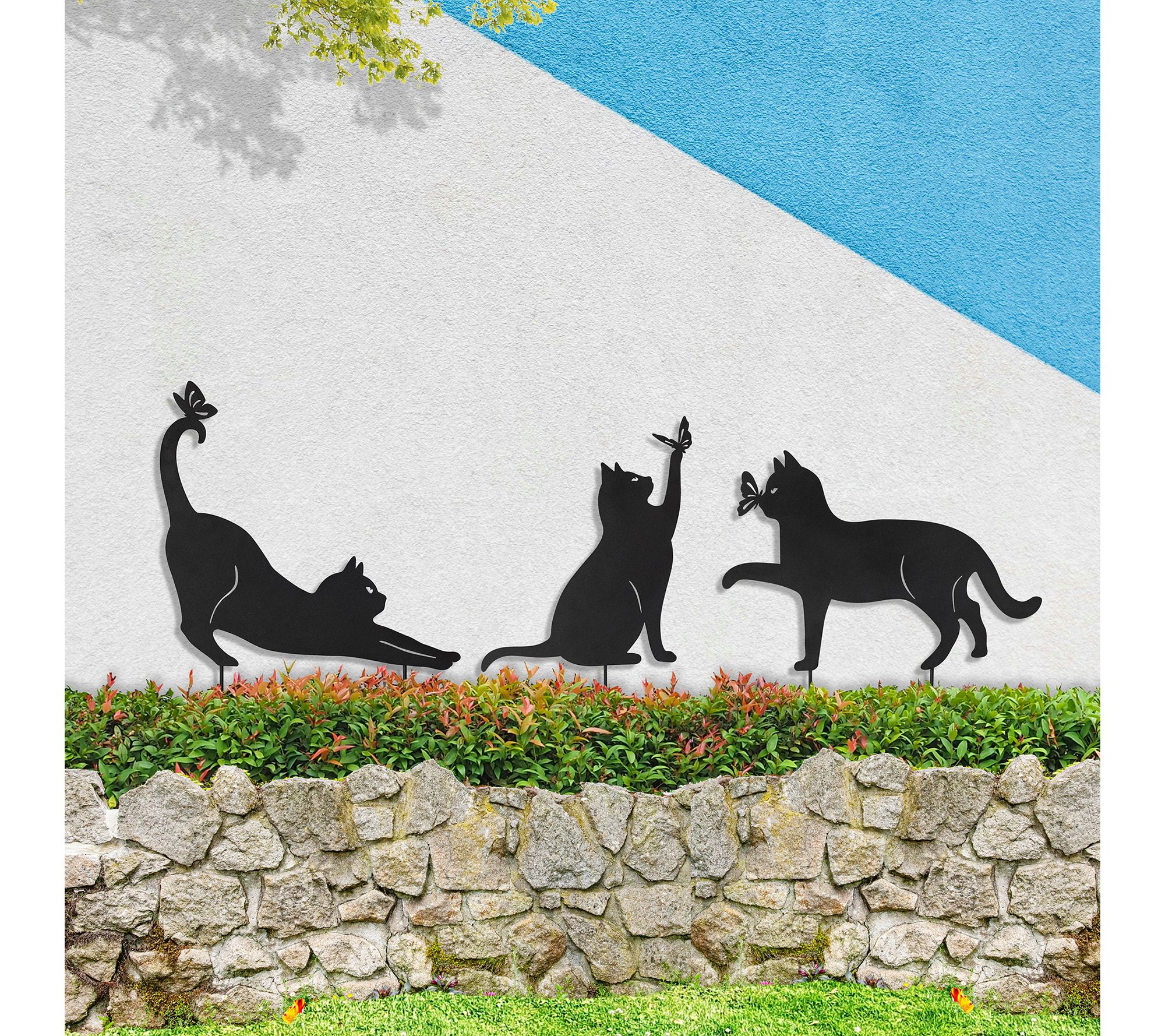• Includes three cat garden stakes