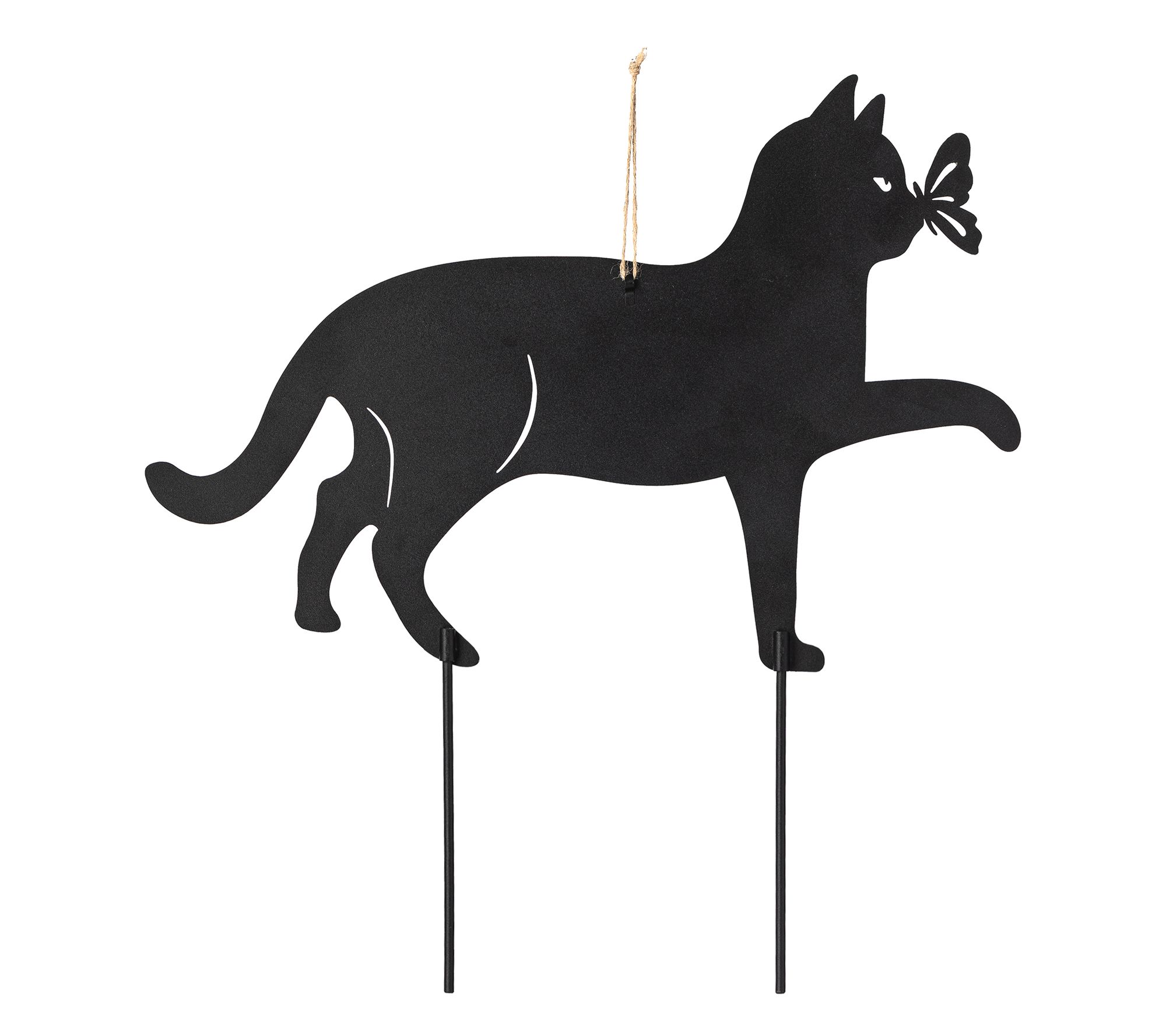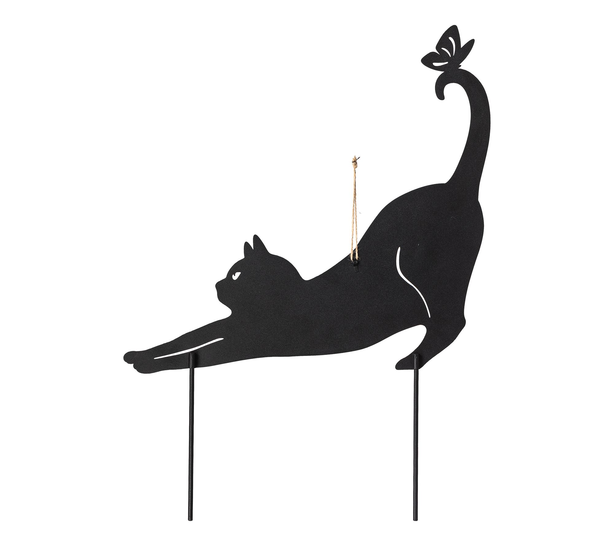 Add a touch of charm and versatility to your garden or home with this playful cat silhouette pick set. Its sleek black design and lifelike die-cut details are sure to delight guests while adding character to your space. These multi-functional pieces don't just work as garden picks -- swap in the jute rope to create stylish wall decor.They're purr-fect for patios, lawns, or for hanging indoors! From Glitzhome.