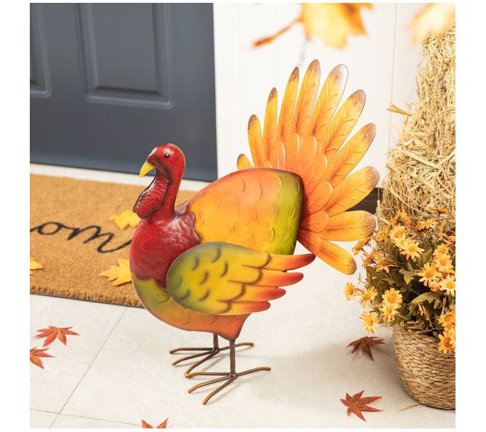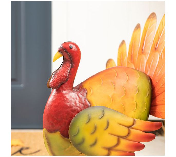 Glitzhome 21.5"H Thanksgiving Metal Turkey Porch Decor