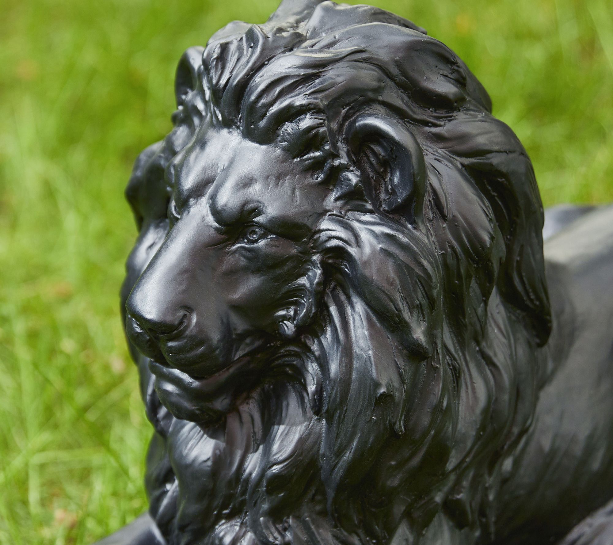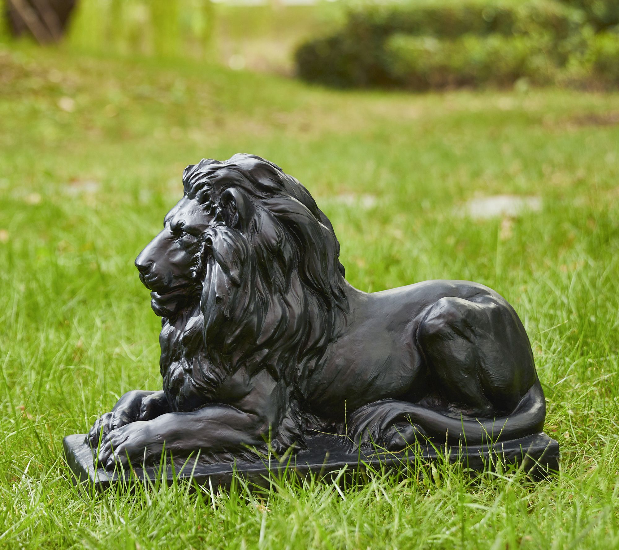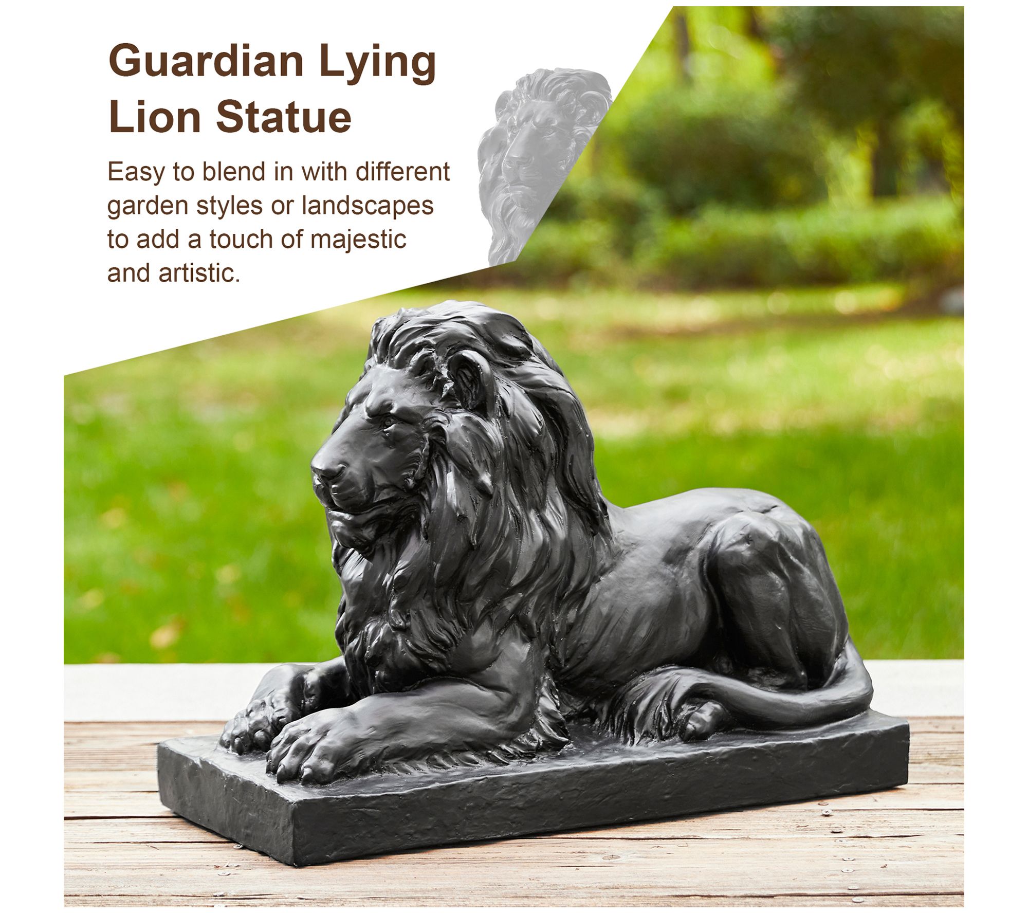 Glitzhome 21.75"L MGO Black Lying Lion Lawn Gar den Statue