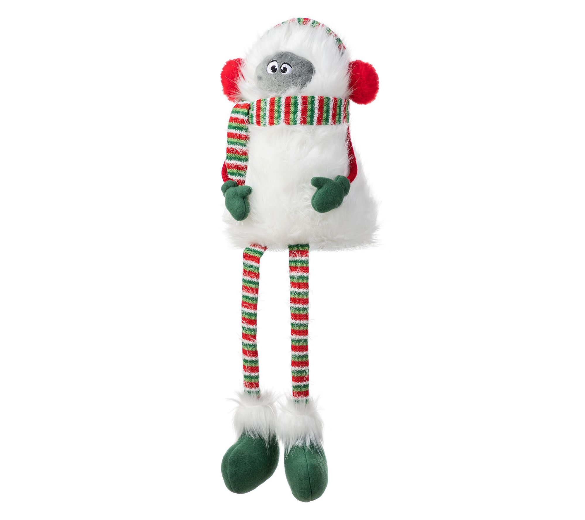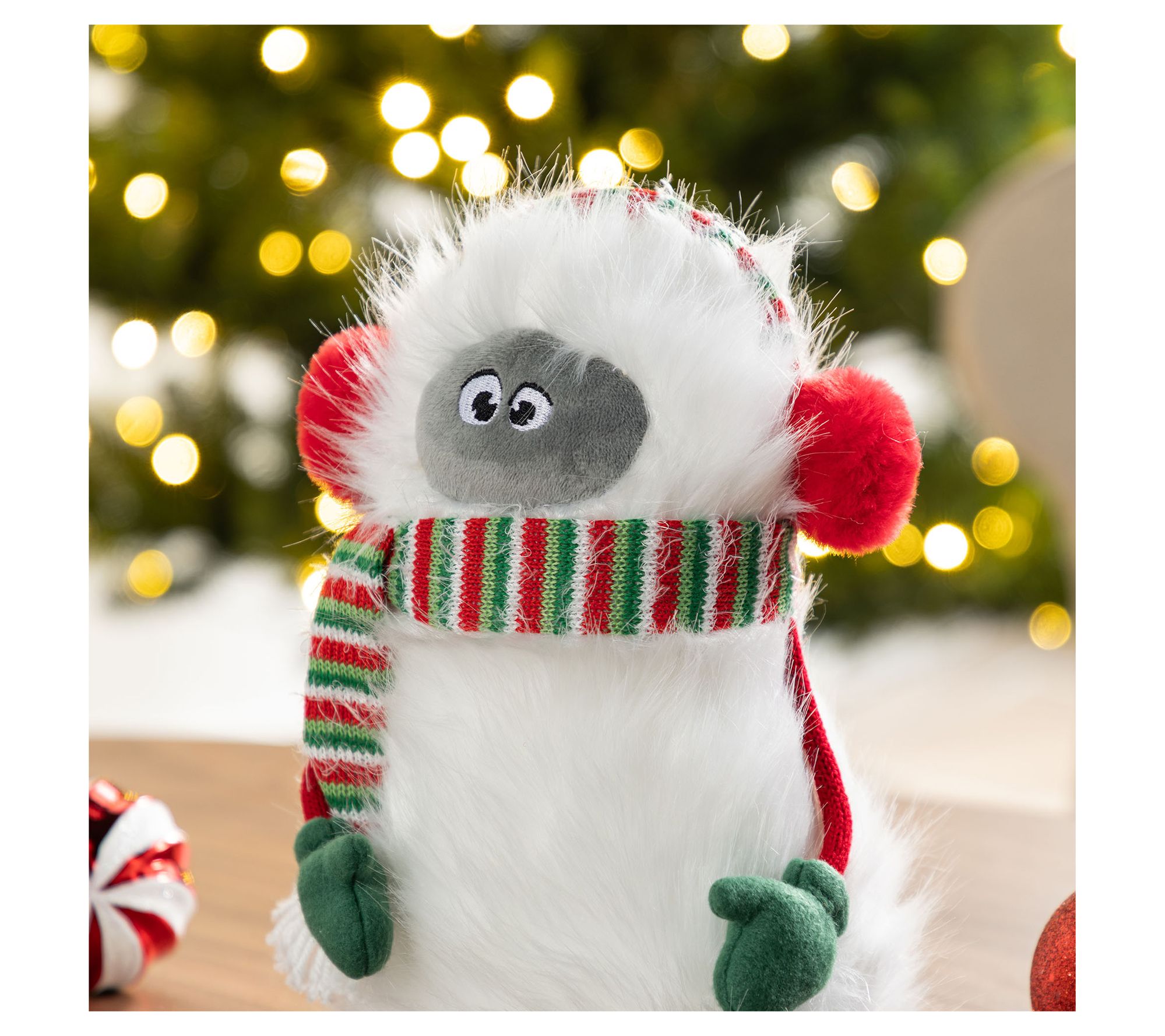 Give your mantel or bookshelf a playful twist this season with a plush fabric yeti that brightens any holiday setting. Featuring a soft white coat, whimsical red pom-poms, and a cheerful striped scarf, this shelf sitter instantly brings a sense of wonder and warmth wherever it's perched. From Glitzhome.