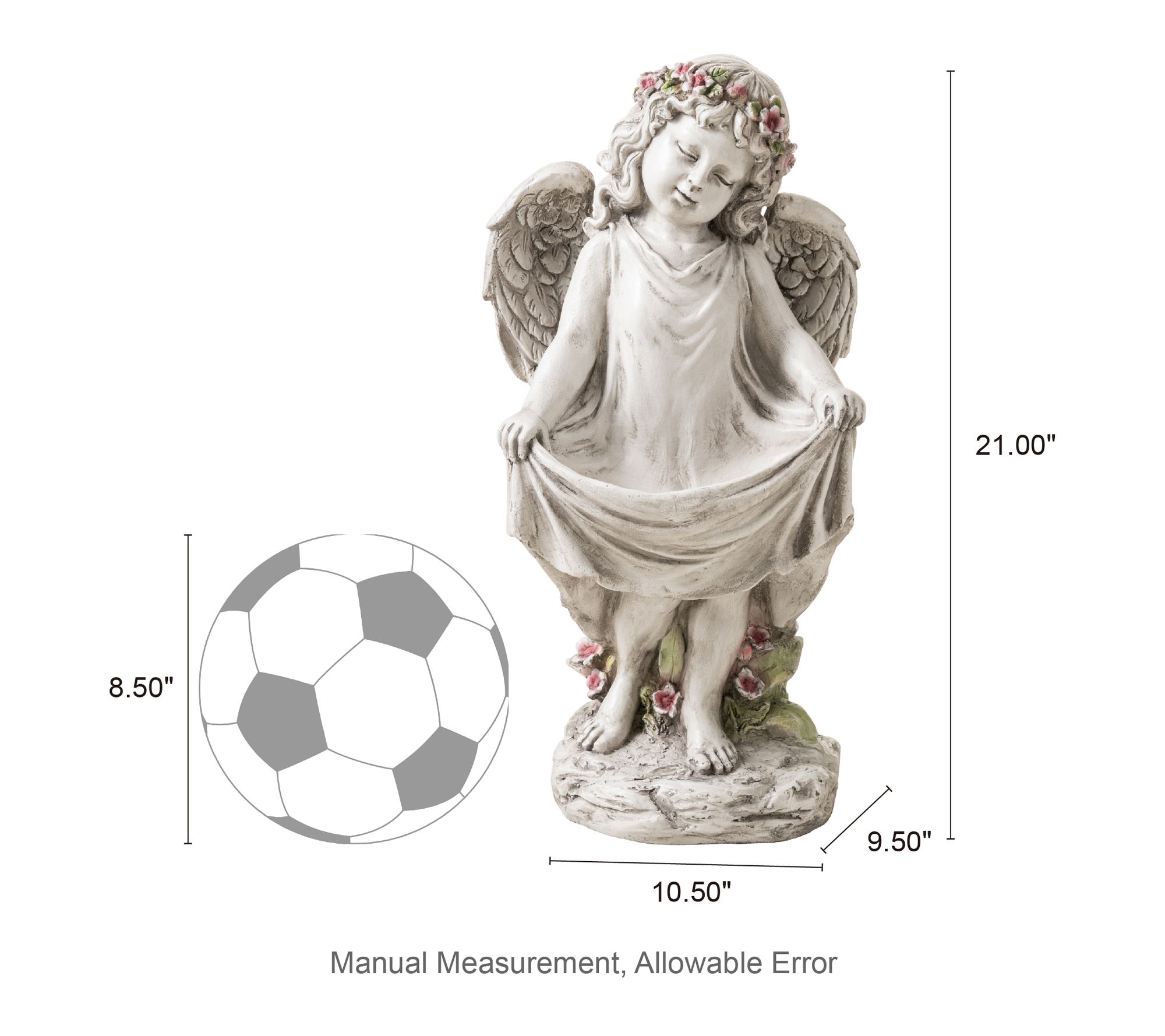 Serene charm blossoms in your garden with this angel statue and birdfeeder, welcoming feathered friends while lending a graceful, artistic touch to your outdoor space. Crafted from MGO and fiberglass, its delicate details -- from charming curls and a floral crown to lifelike wings -- make it just as enchanting nestled among flowers as it is by a garden path. From Glitzhome.