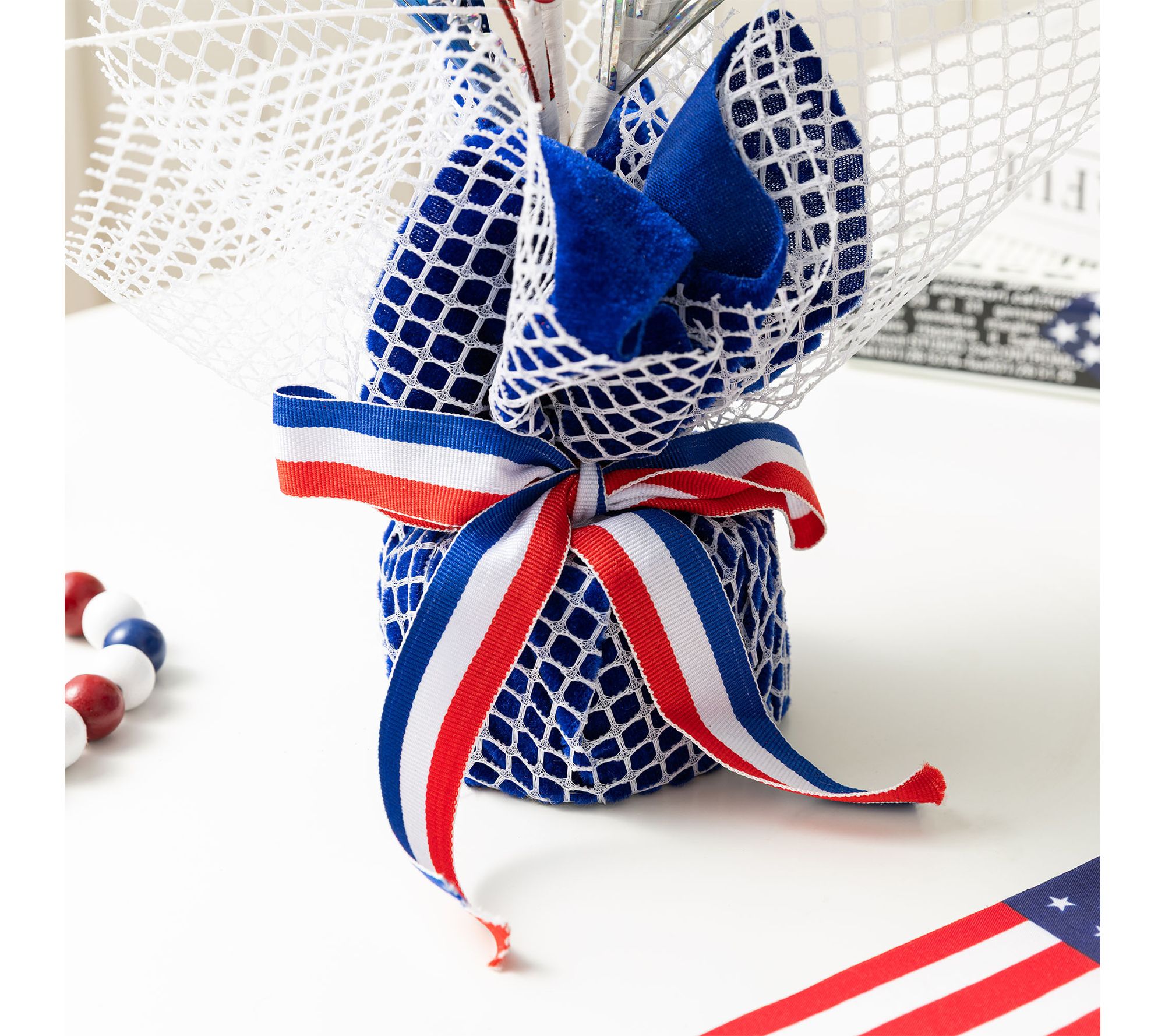 • Vibrant red, white, and blue hues complement any festive decor