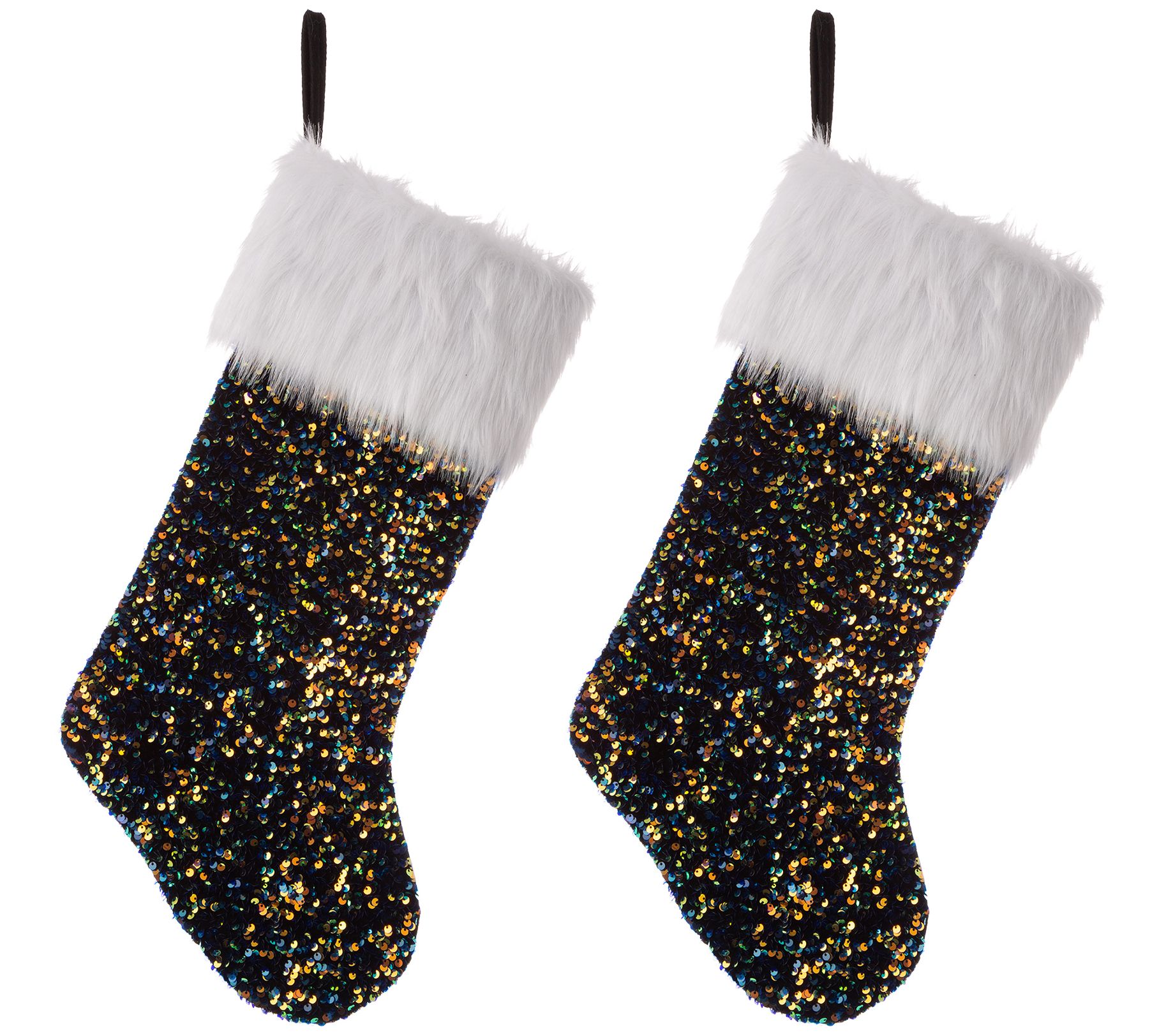 Add a little glam to your holiday with set of two shimmering sequin stockings. From Glitzhome.