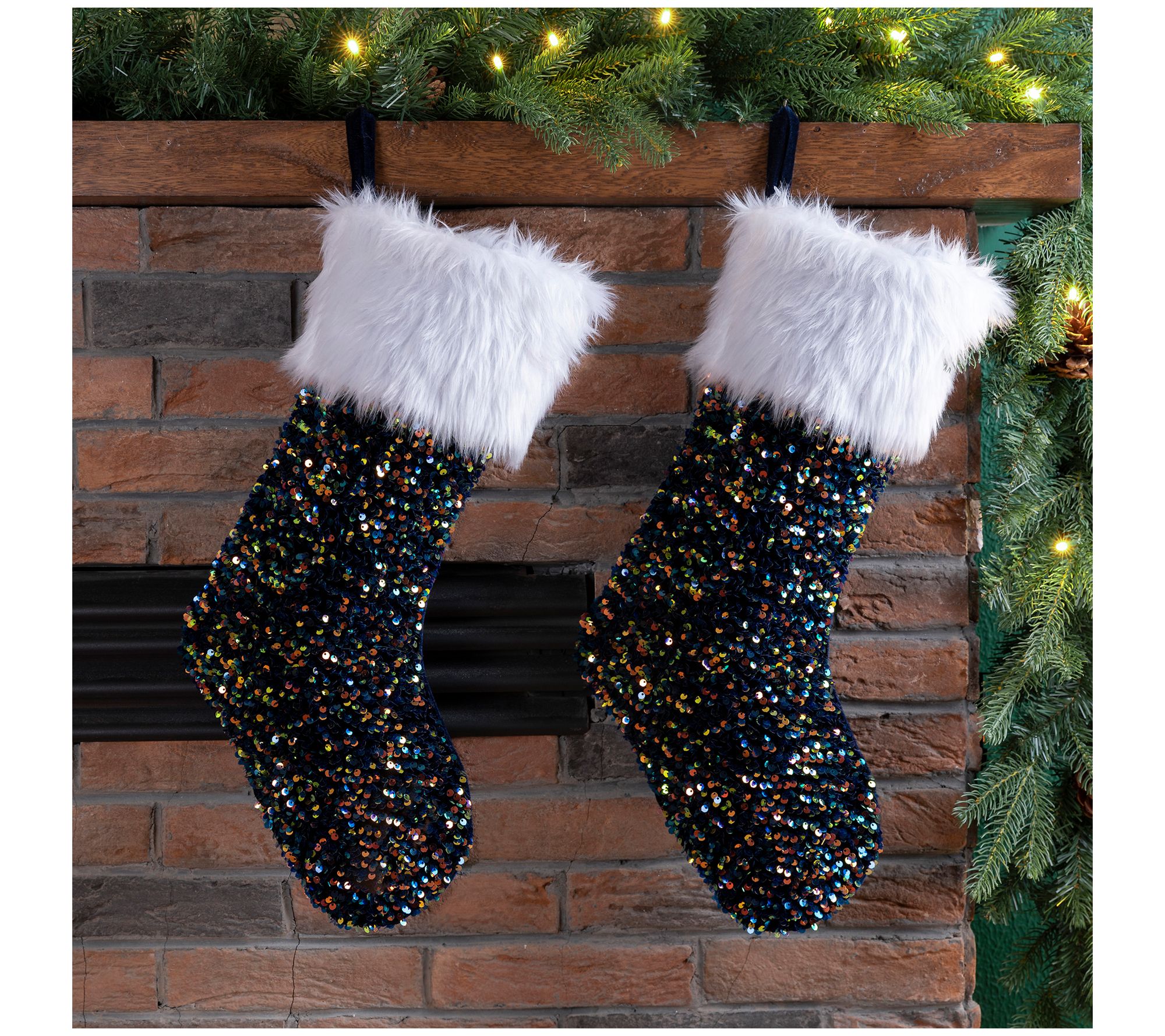 Glitzhome 21"L Sparkly Sequin Christmas Stocking, Set of 2