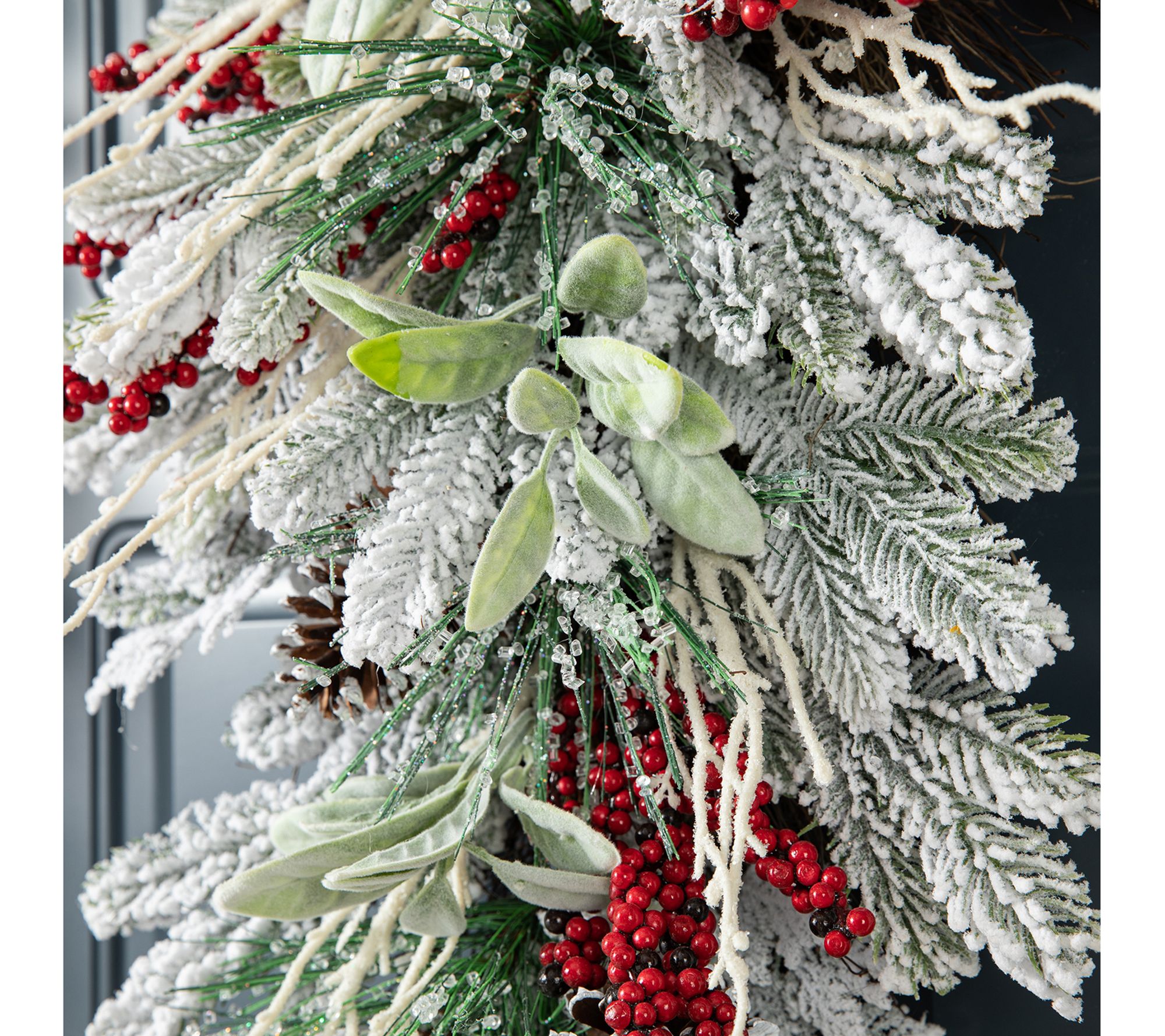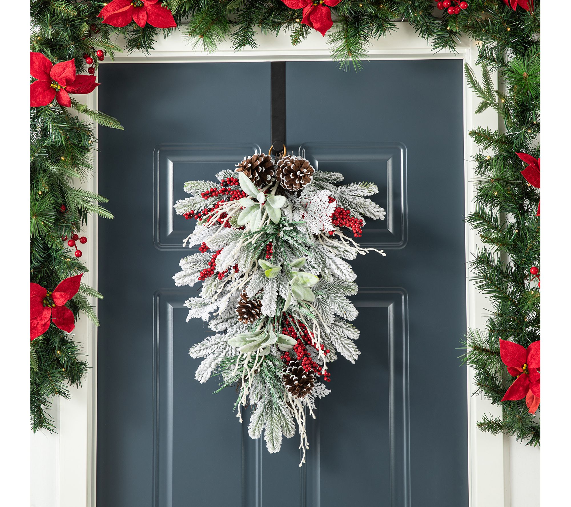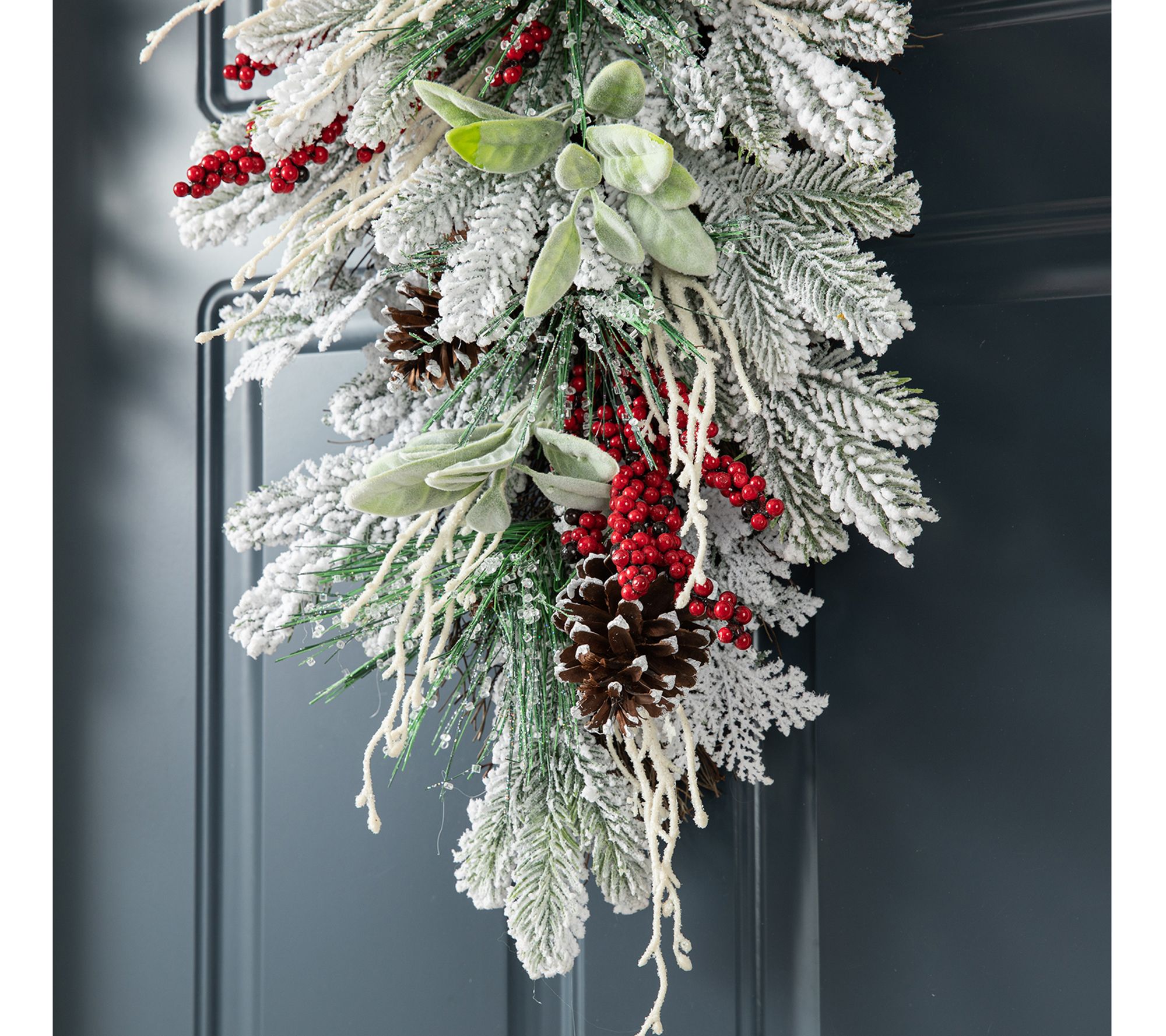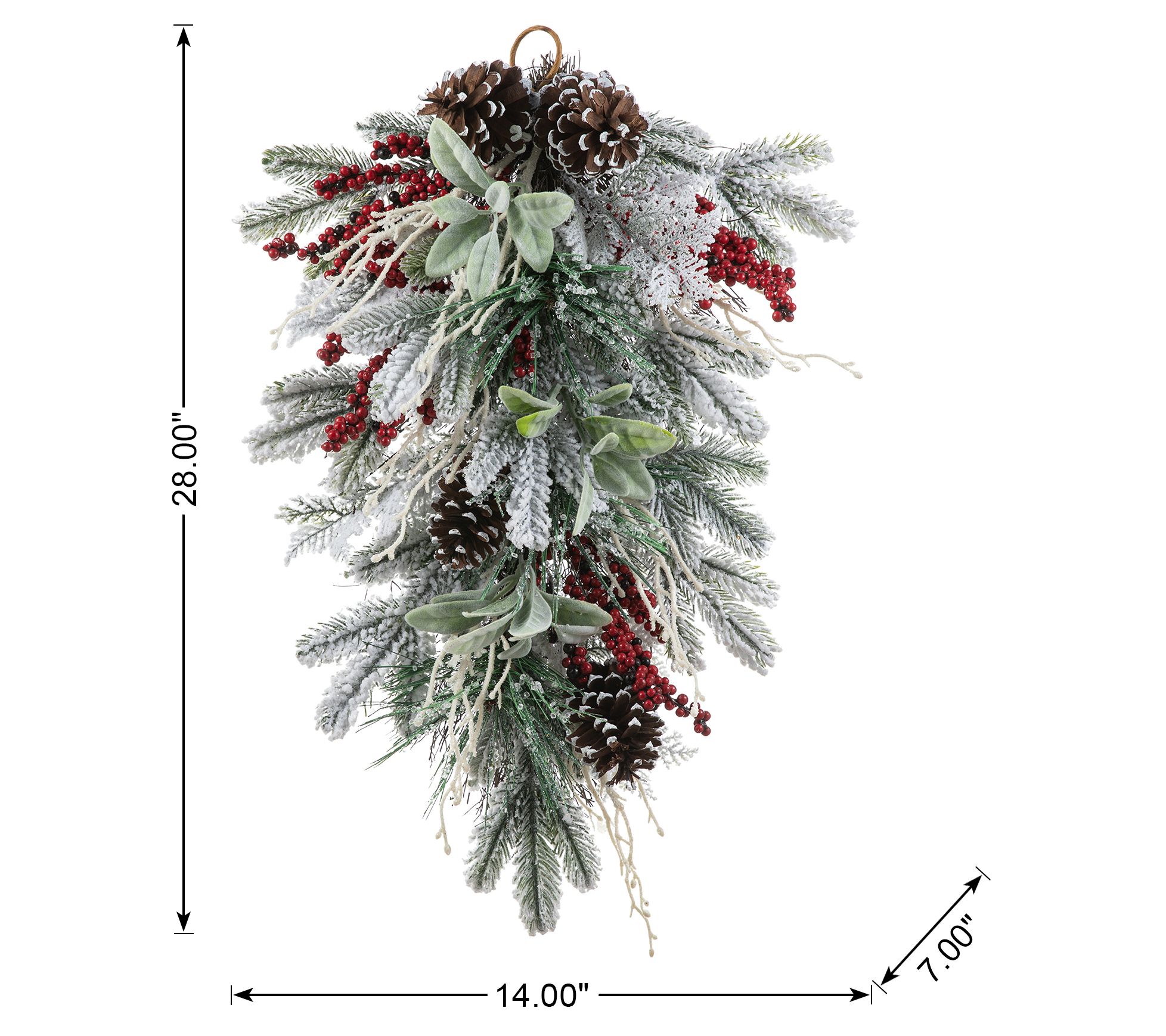 Bring the festive spirit into your home with this flocked pinecone and berry teardrop swag. This elegant decoration features a beautiful arrangement of lifelike pinecones, berries, and a shimmering finish to create a captivating centerpiece for your holiday decor. From Glitzhome.
