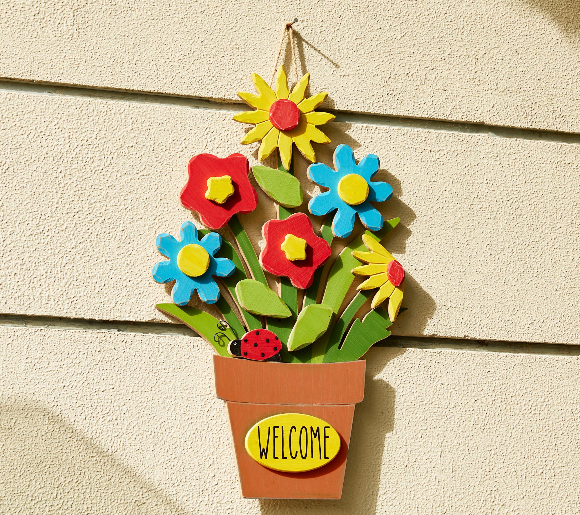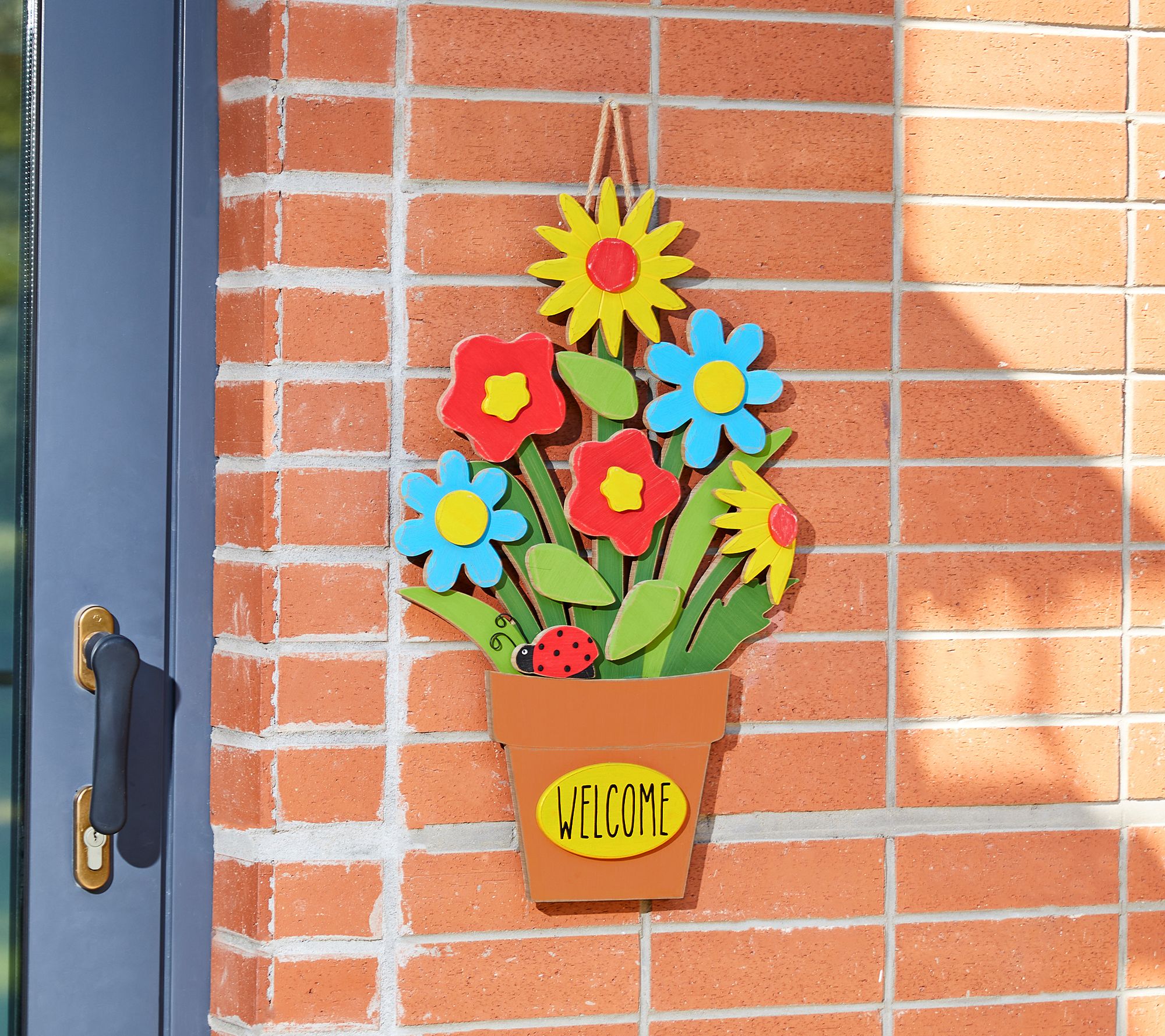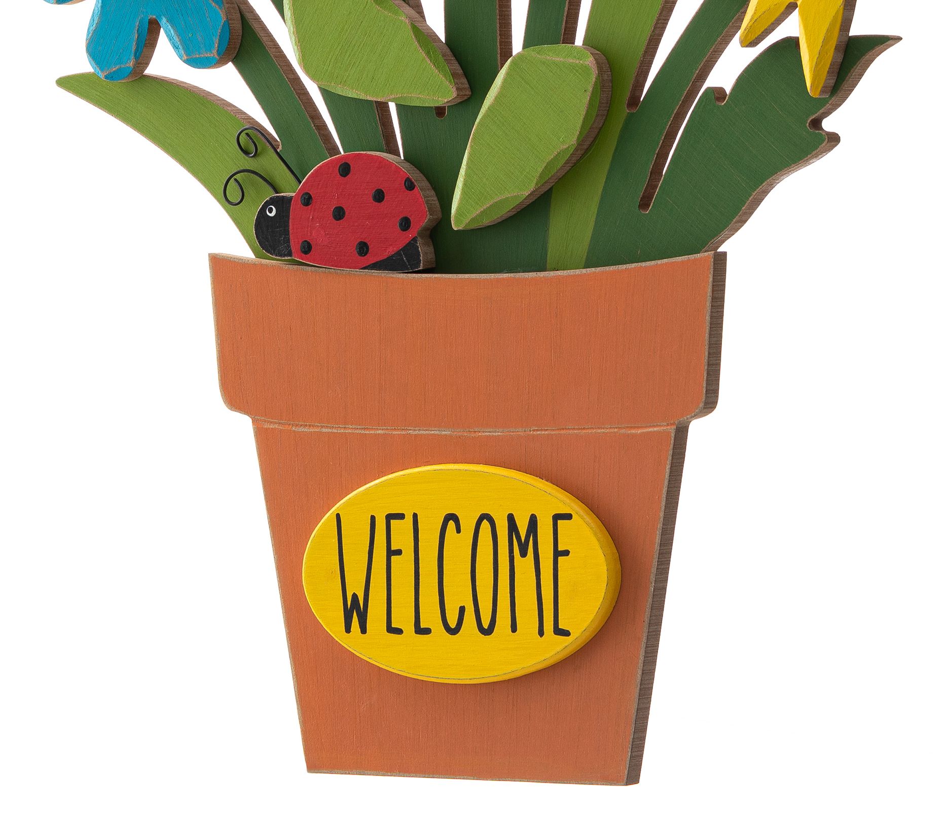 Greet your guests with the welcoming appeal of this vibrant pot of flowers that comes ready to hang on your door, in your entryway, or above your mantel. From Glitzhome.