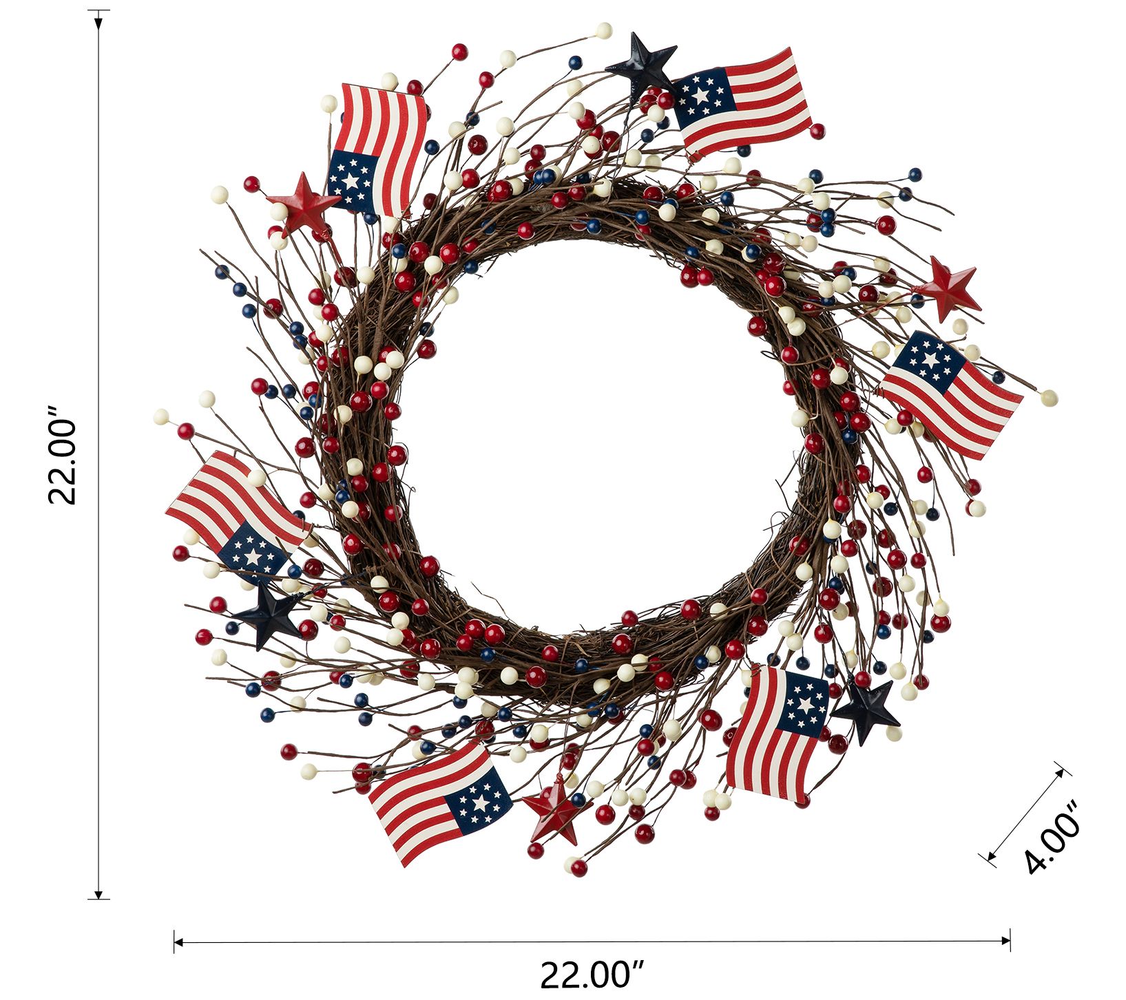 Glitzhome 22"D USA Patriotic Americana Flag andBerries Wreath
