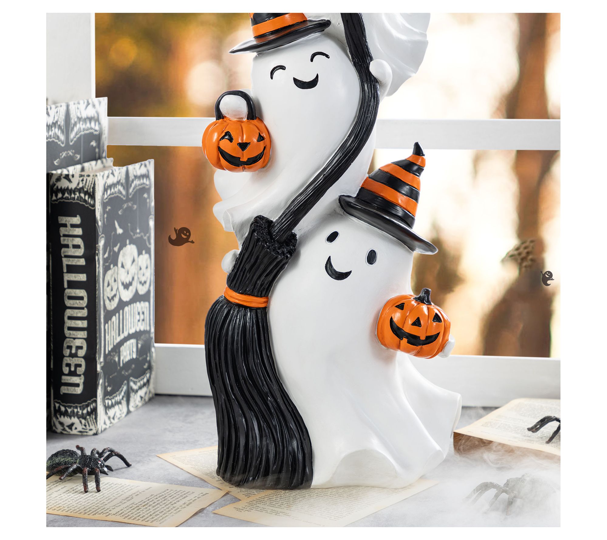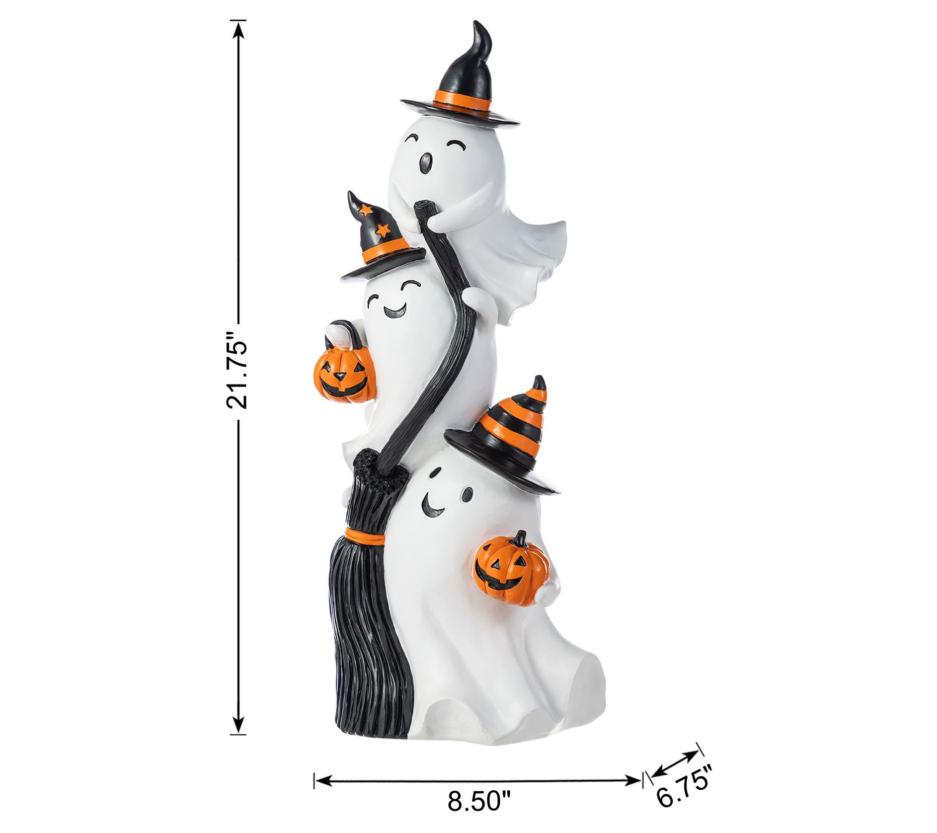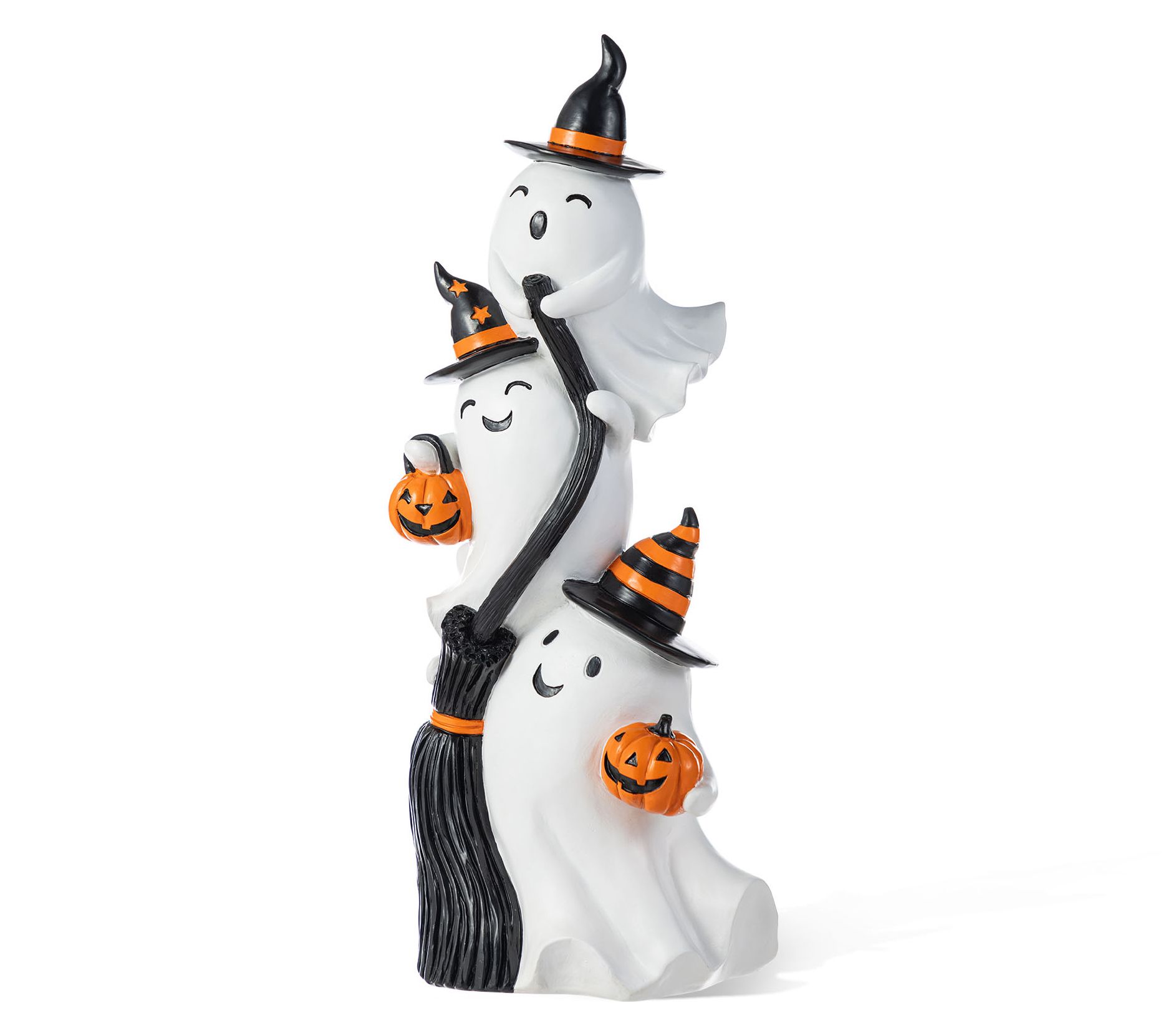 When the season calls for a little whimsical fun, a trio of playful ghosts stacked high brings a cheerful note to your Halloween greeting. Place them beside your front door or in the foyer to delight trick-or-treaters and set a festive mood for guests. Friendly faces, bright hats, and a central broom create a scene that feels welcoming and full of light-hearted charm. From Glitzhome.