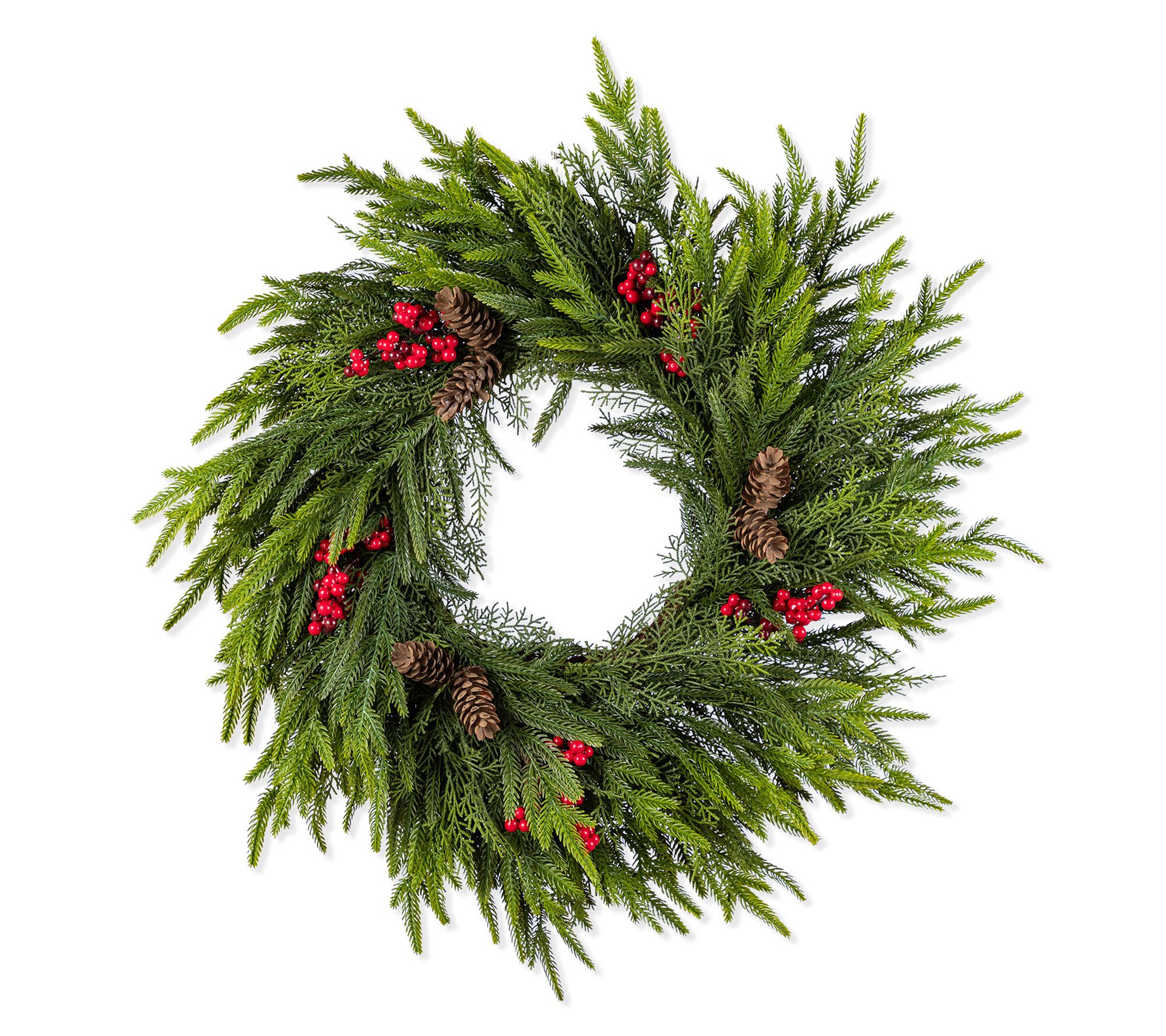 Glitzhome 24" Christmas Wreath with Pinecones and Red Berries