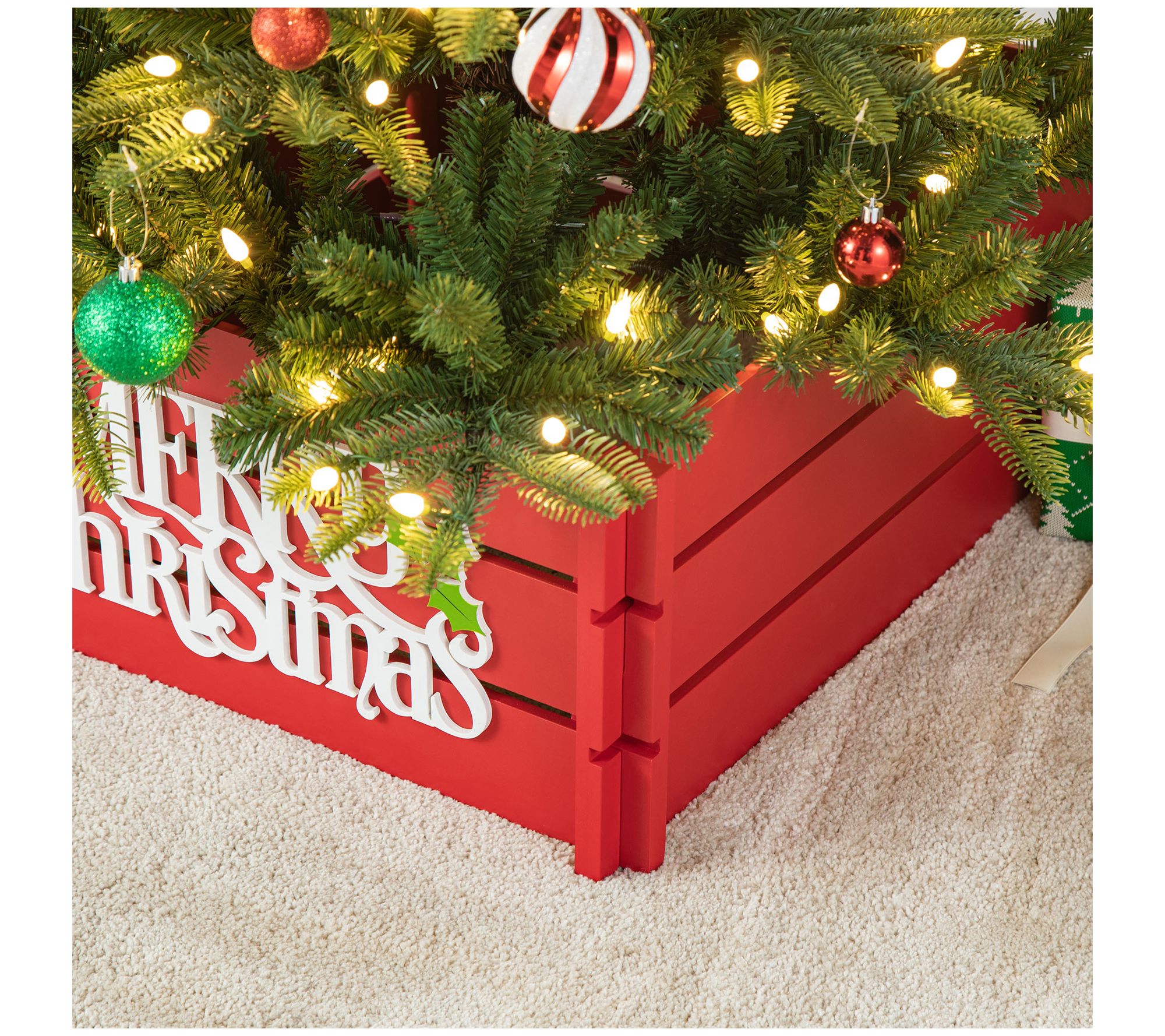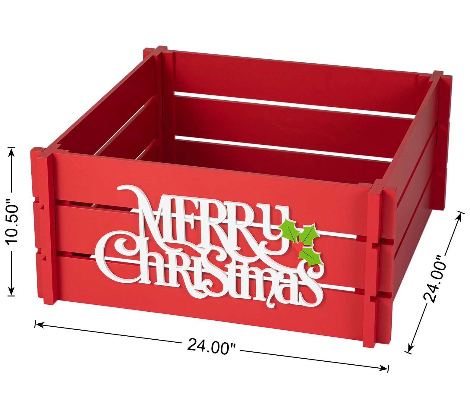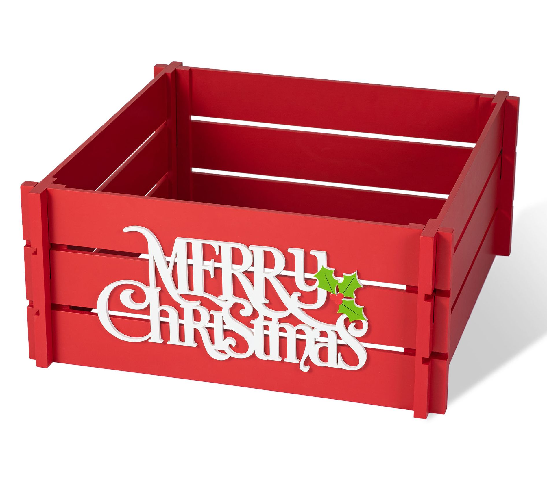 Glitzhome 24" MERRY CHRISTMAS Wooden Crate TreeCollar