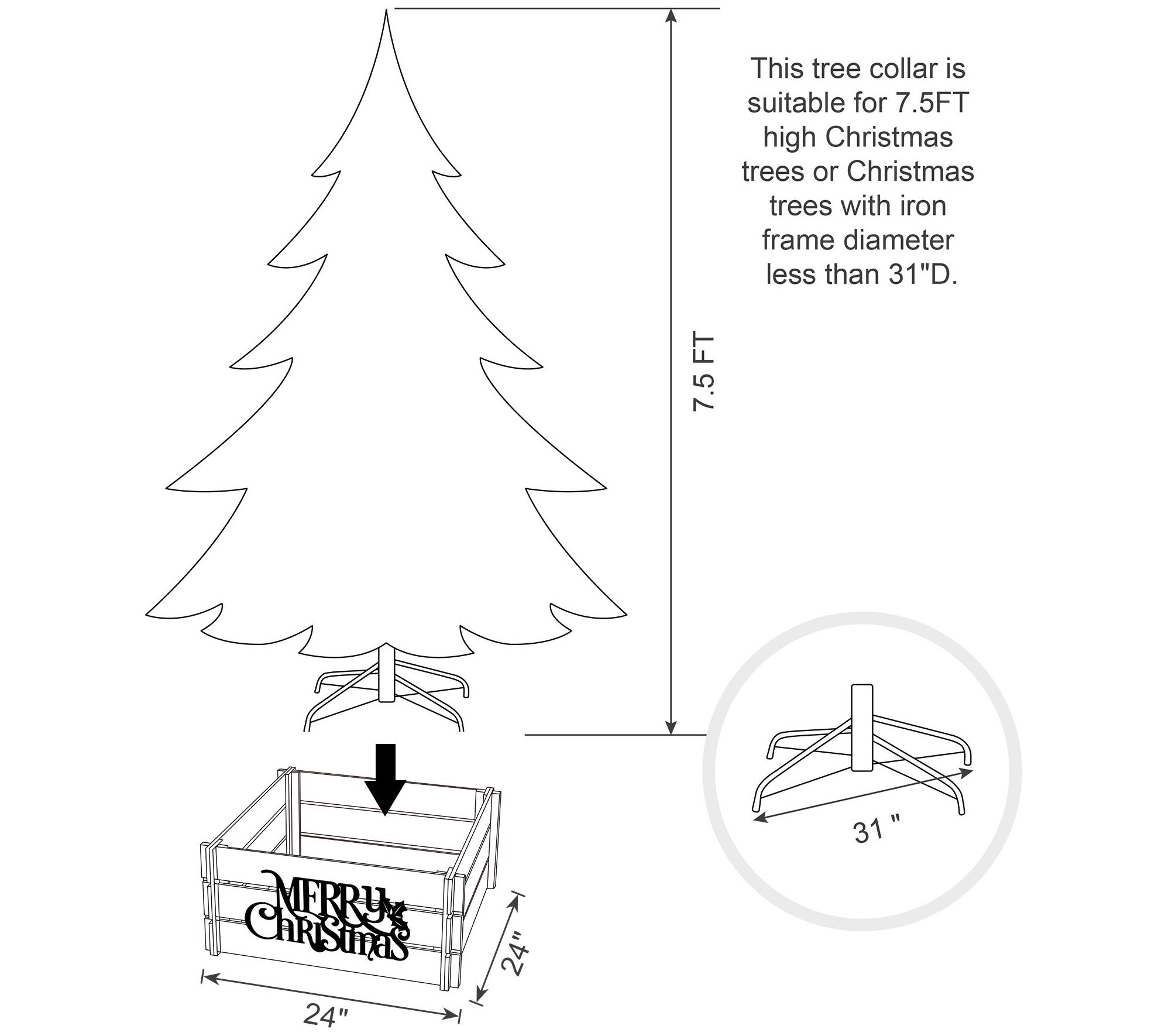 • Fits trees up to 7.5'H or tree stands under 31"Diam
