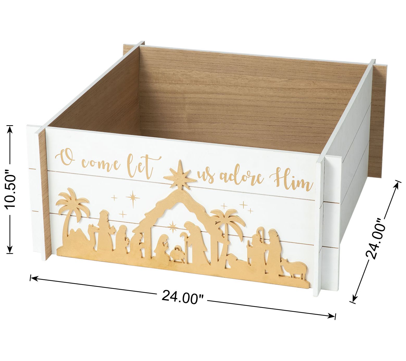 Glitzhome 24" Wooden Nativity Scene Tree Collar