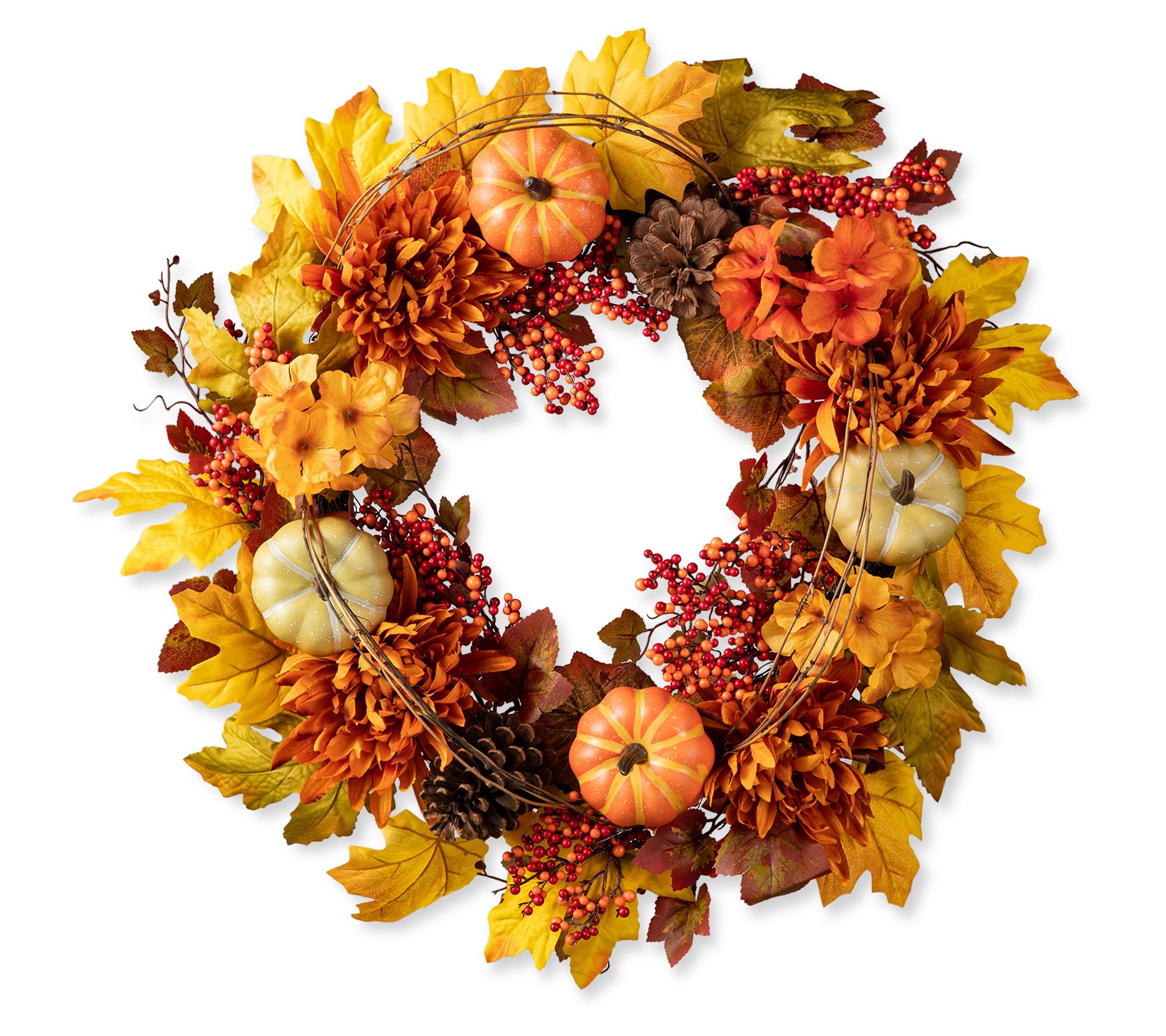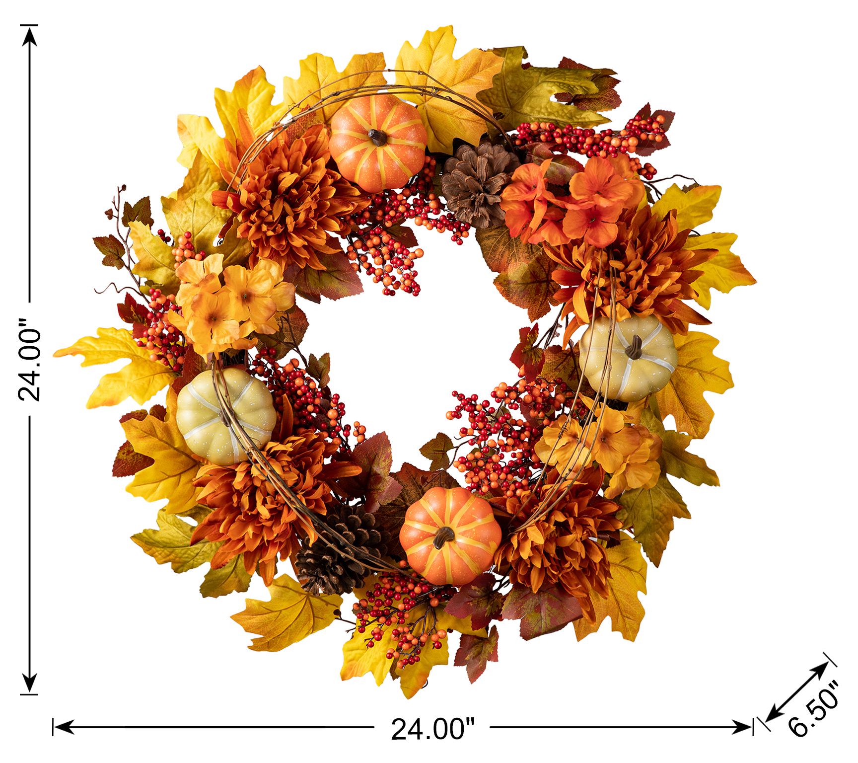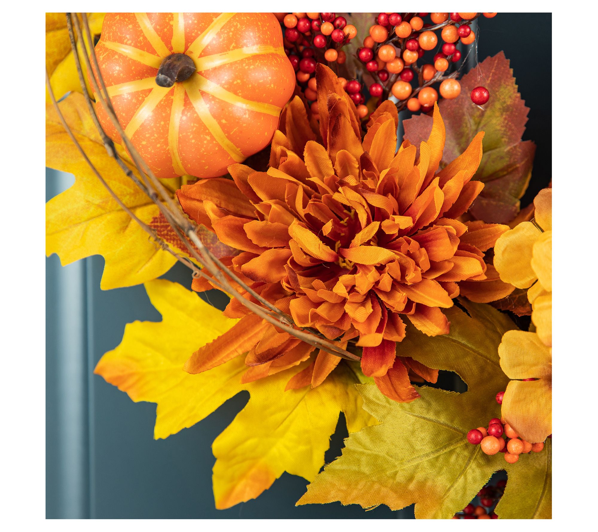 Glitzhome 24"D Fall Dahlia Pumpkin, Leaf and Berry Wreath