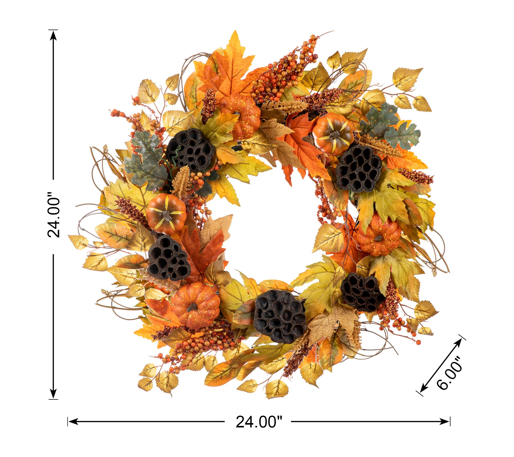 Glitzhome 24"D Fall Harvest Pumpkin Leaf FloralWreath