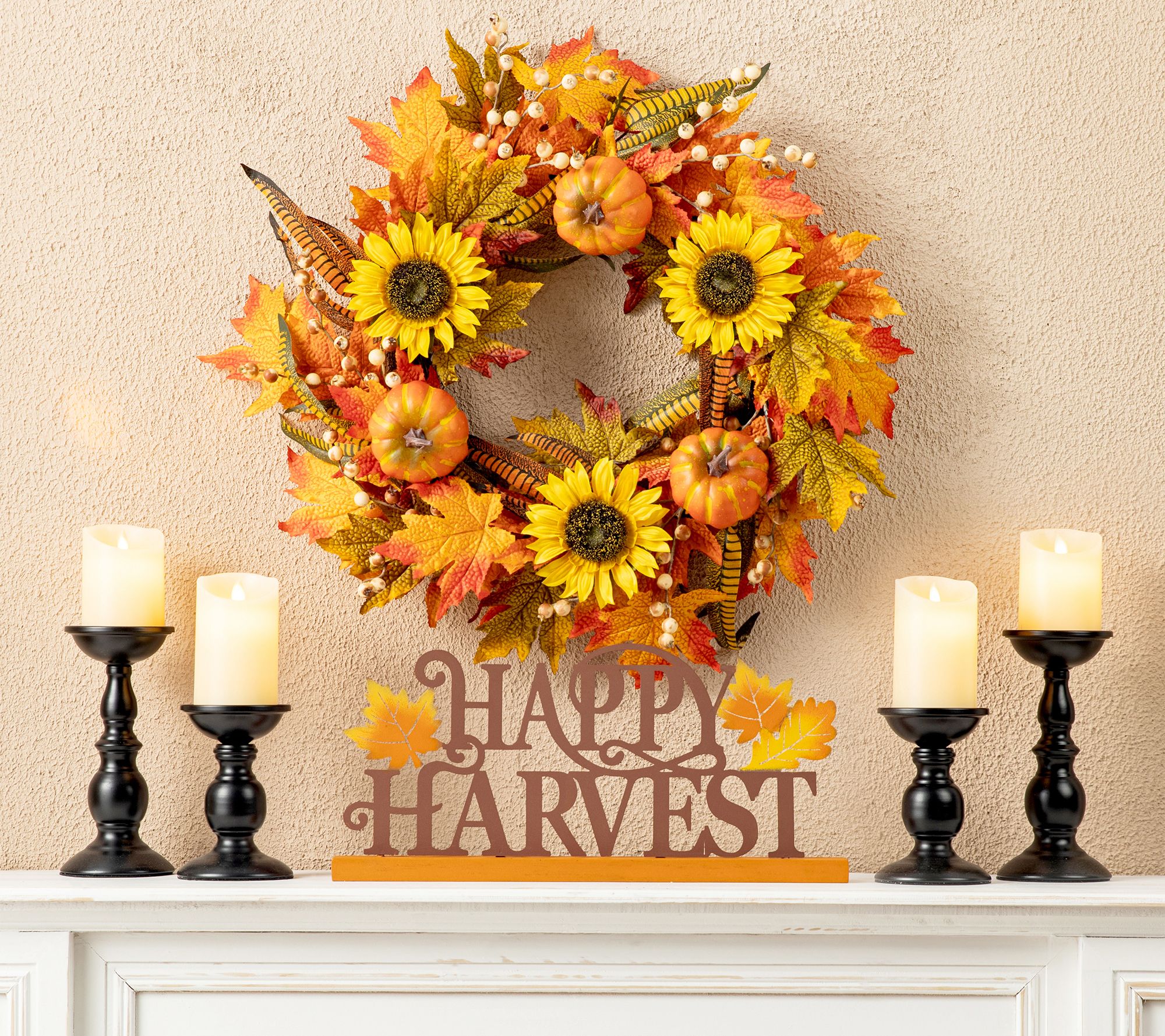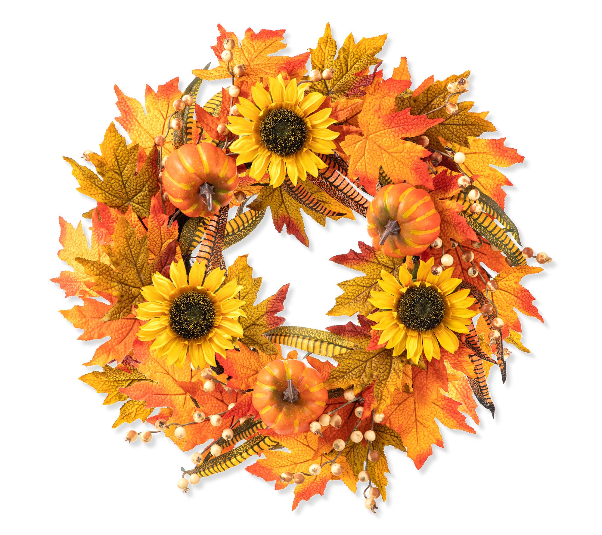Deck your halls for the fall! Welcome your guests at your door or in your entryway with the warm autumnal charm of this sunflower and pumpkin wreath. From Glitzhome.
