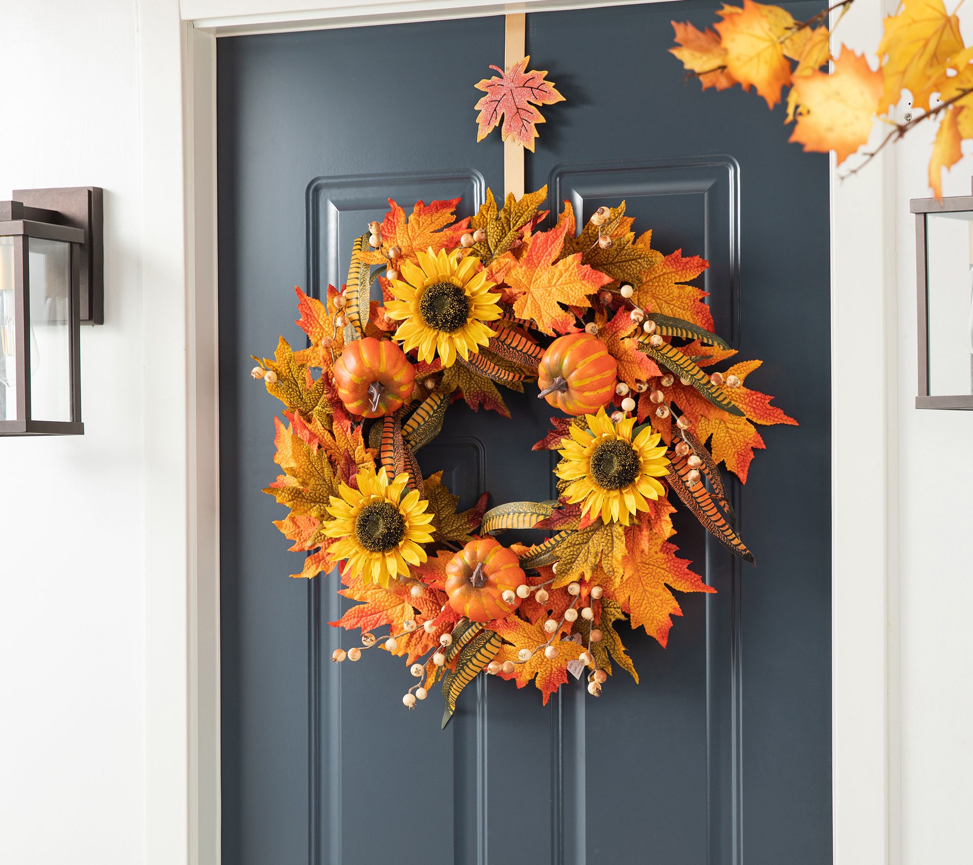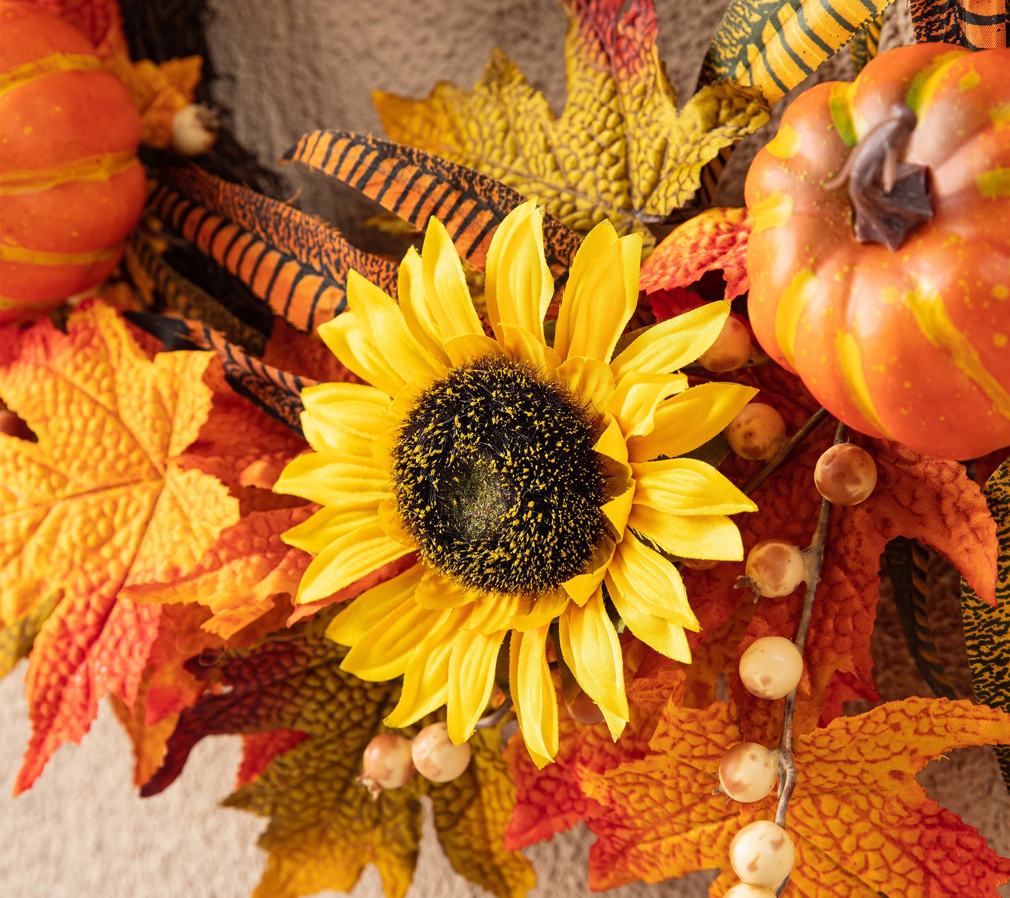 • Features lifelike autumn leaves, pumpkins, and sunflowers