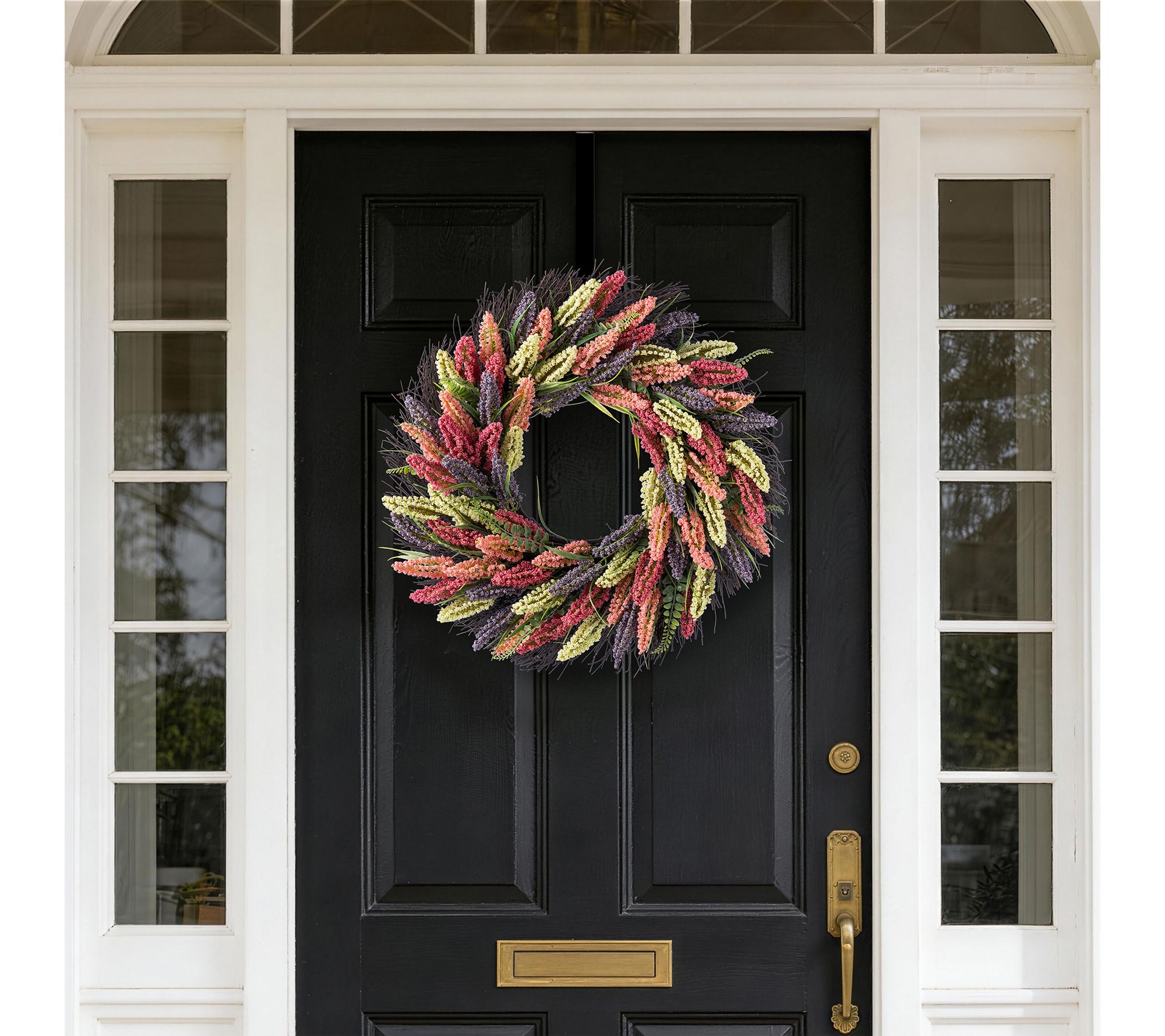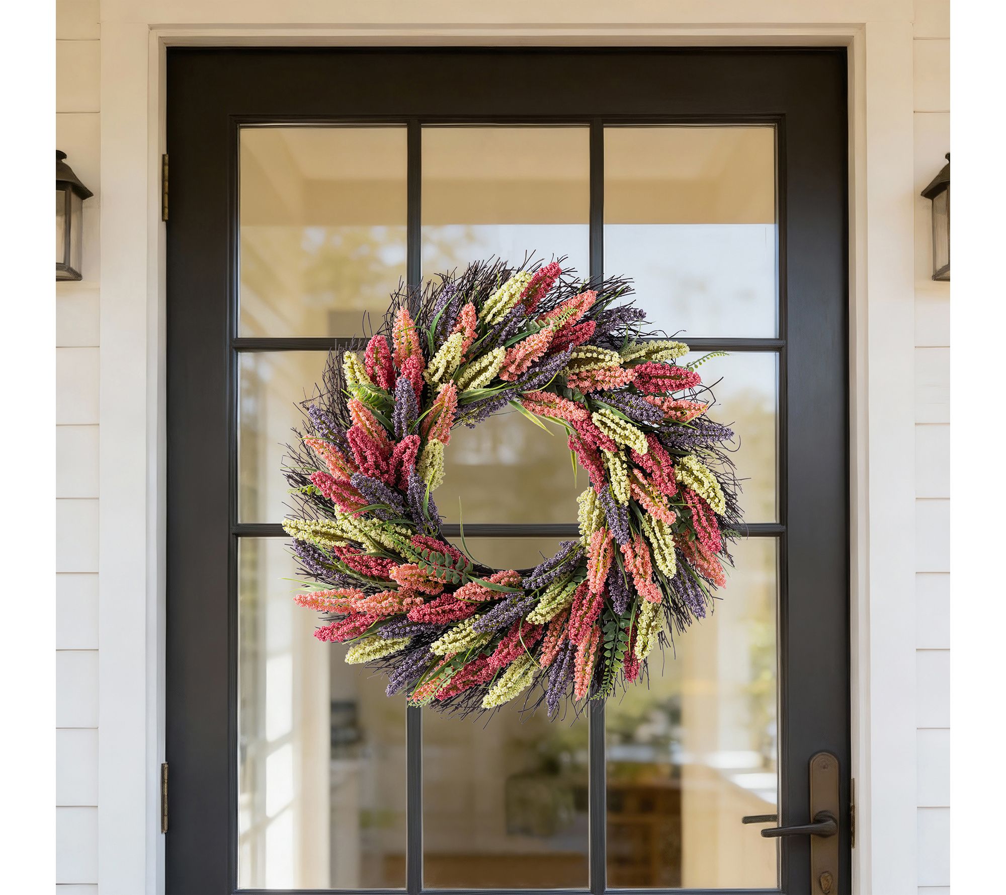 Welcome guests with a burst of color by displaying this lifelike heather wreath on your front door or wall. A lively blend of pink, purple, and yellow blooms is complemented by eucalyptus-style greenery, all beautifully arranged to infuse any space with the charm of nature -- no maintenance required. From Glitzhome.