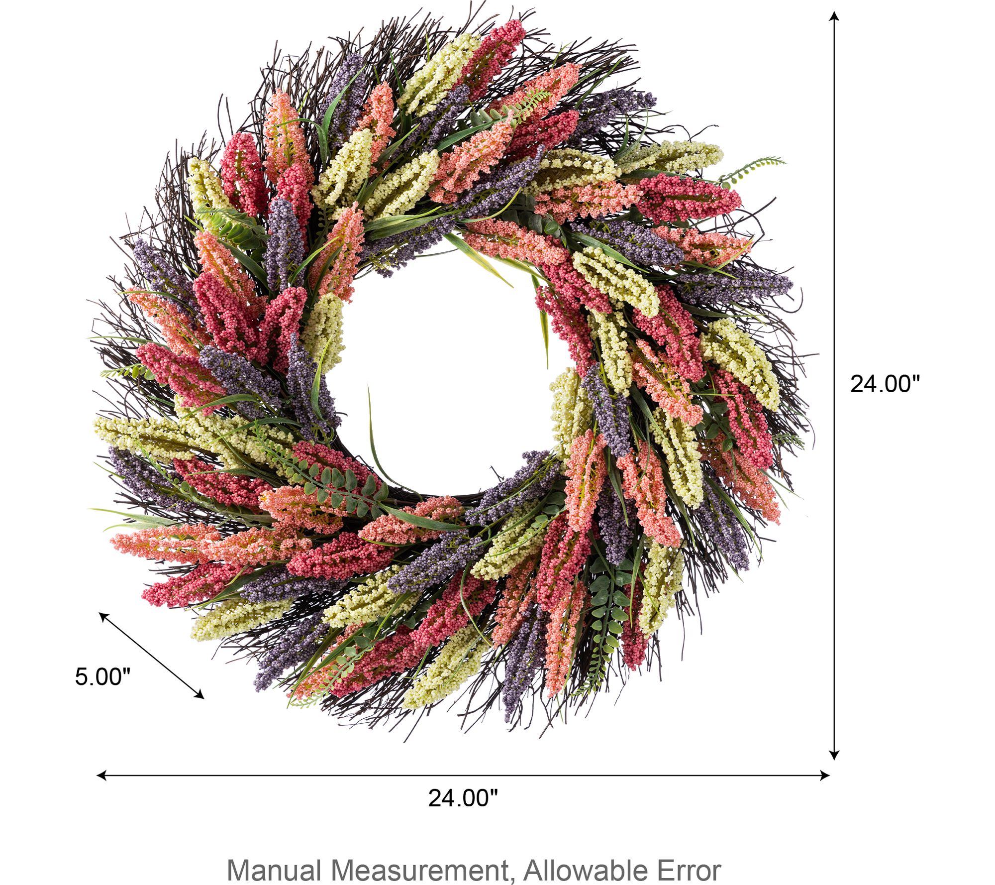 Glitzhome 24"D Pink, Purple & Yellow Mixed Heather Wreath