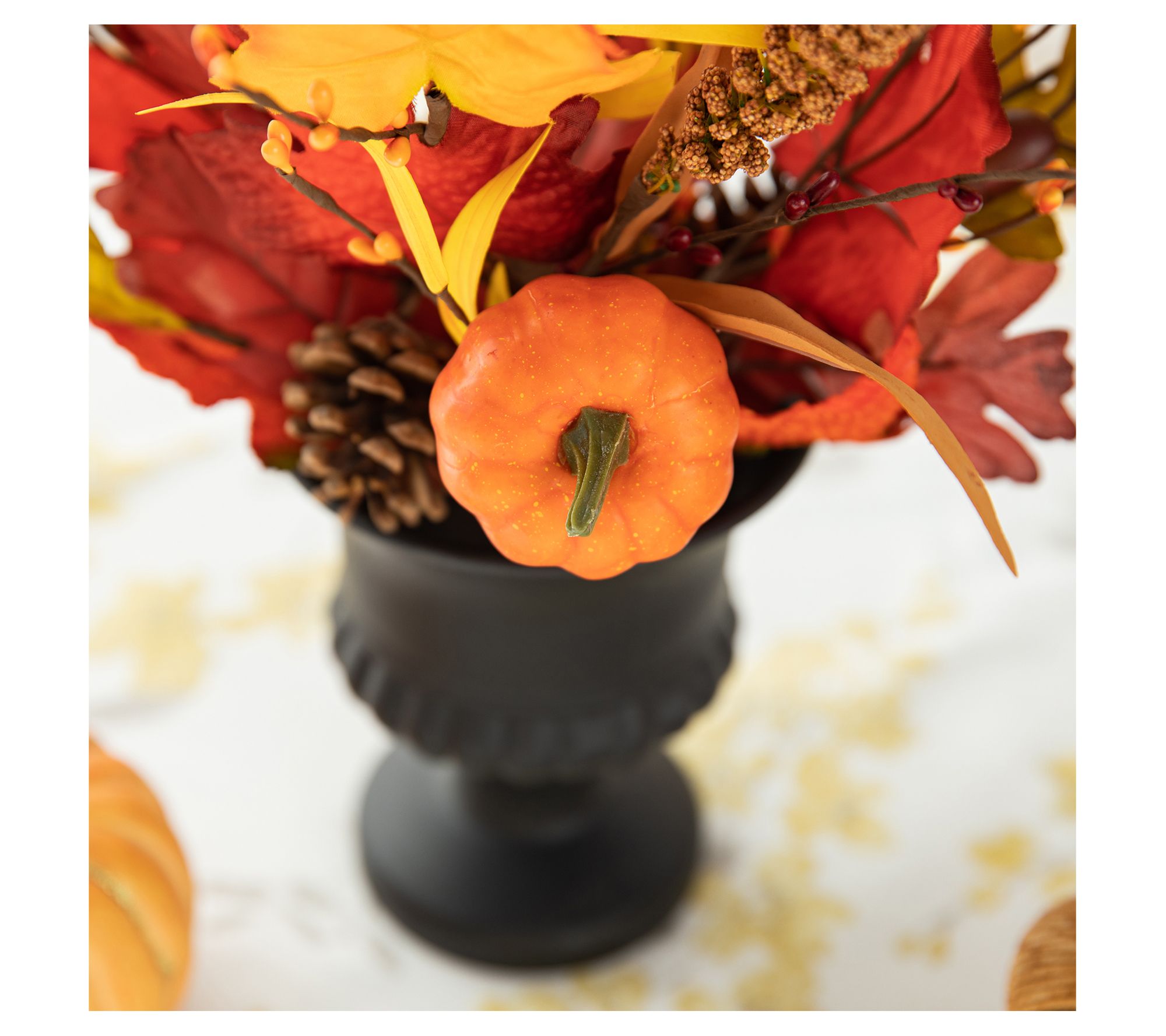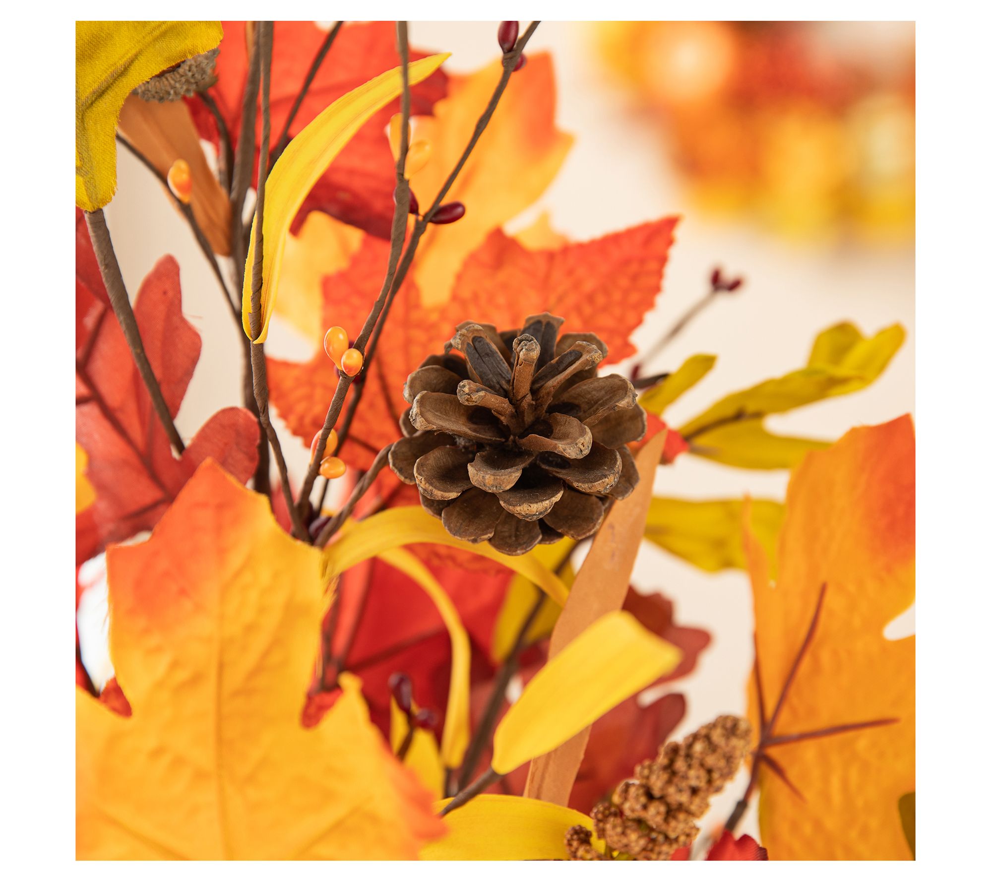 Spruce up your home with the Glitzhome 24"H Fall Maple Leaf Urn Table Tree. Decorated with pumpkins, berries, and maple leaves, this charming piece brings a touch of autumn indoors. The unique urn base adds a touch of elegance, making it perfect for tables, shelves, or countertops. From Glitzhome.
