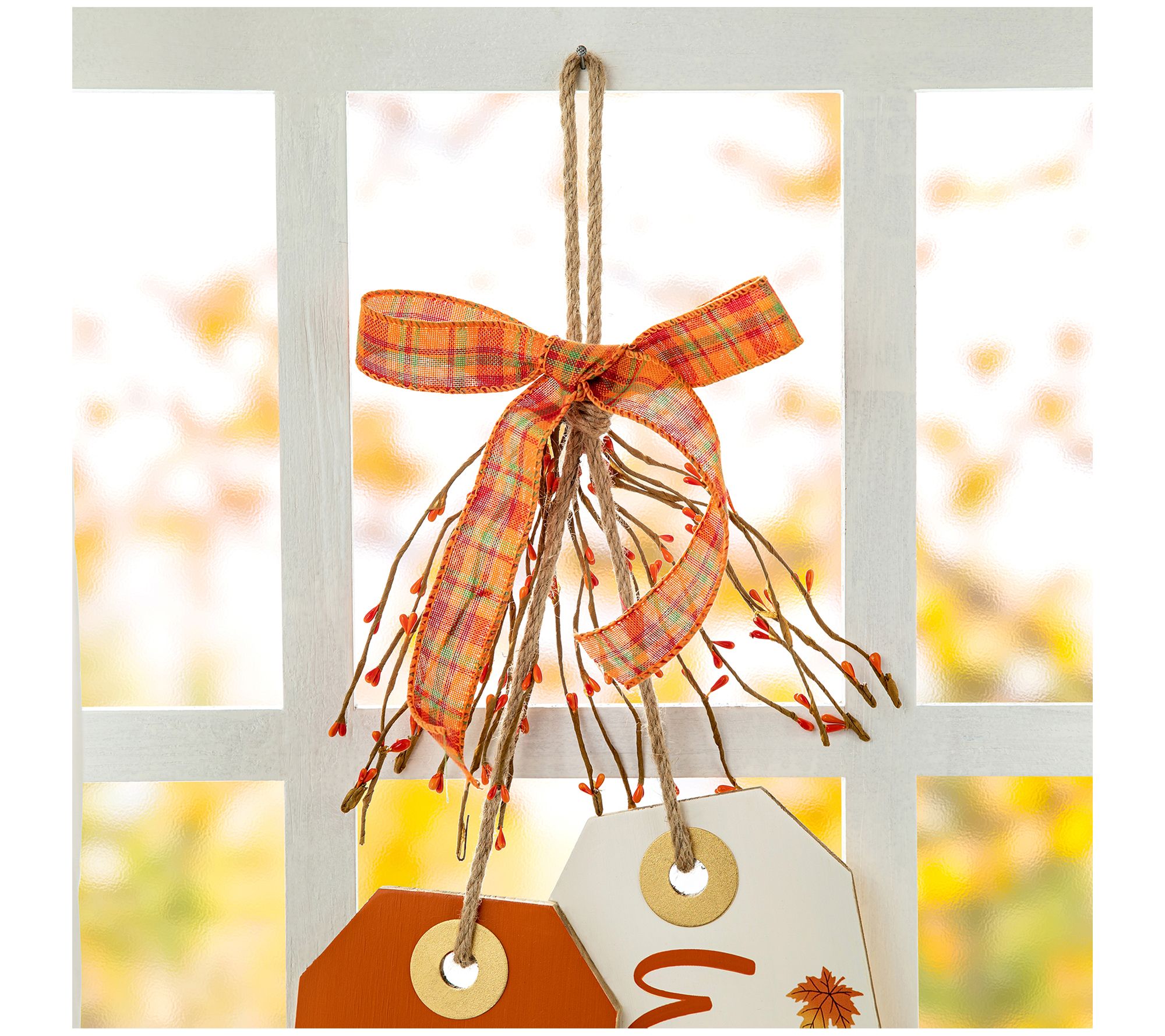With cozy fall colors and seasonal messages, all topped by a plaid bow, this door hanger is the perfect way to welcome friends and family into your harvest home. From Glitzhome.