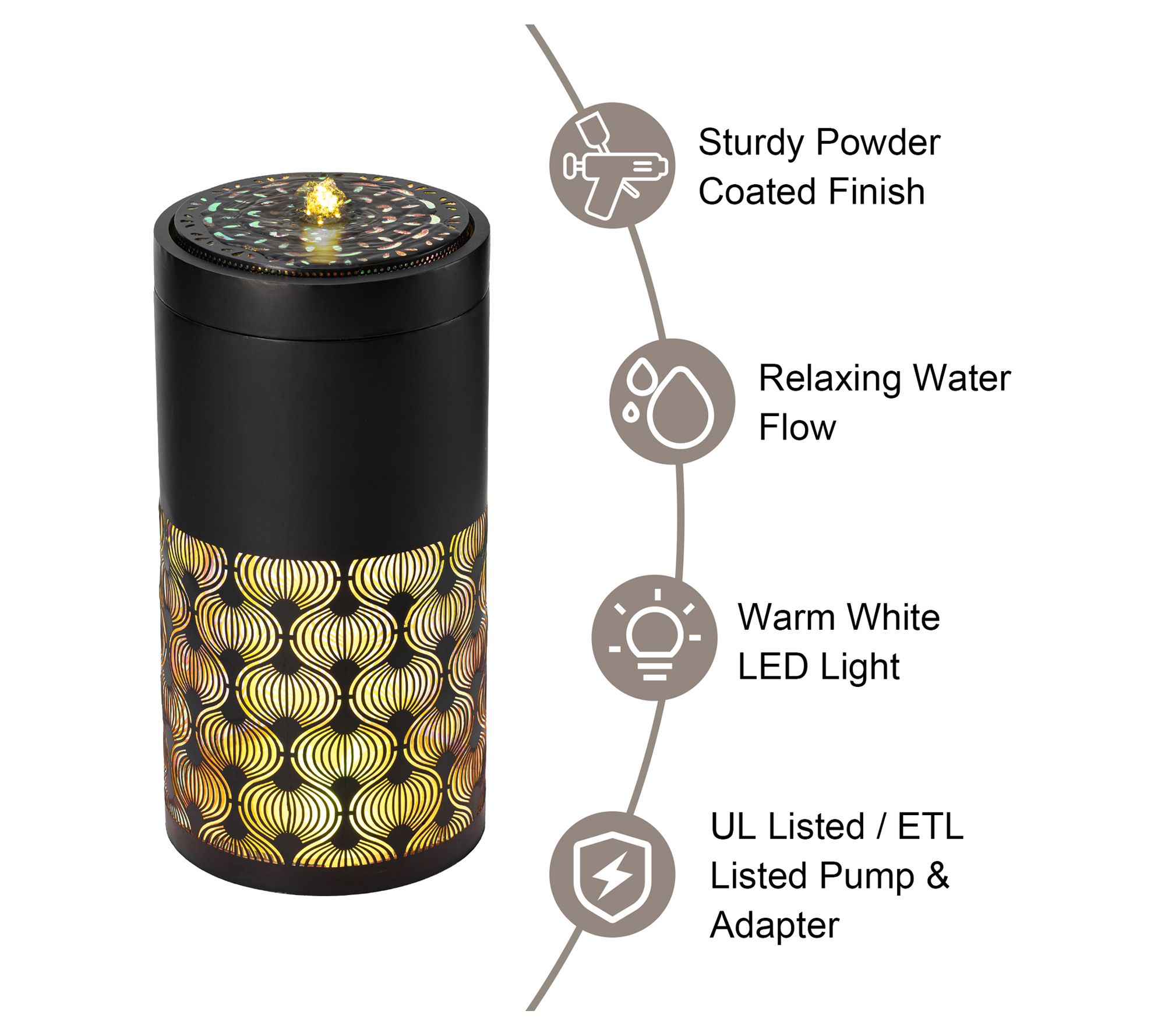 • Includes fountain with pump and LED lights