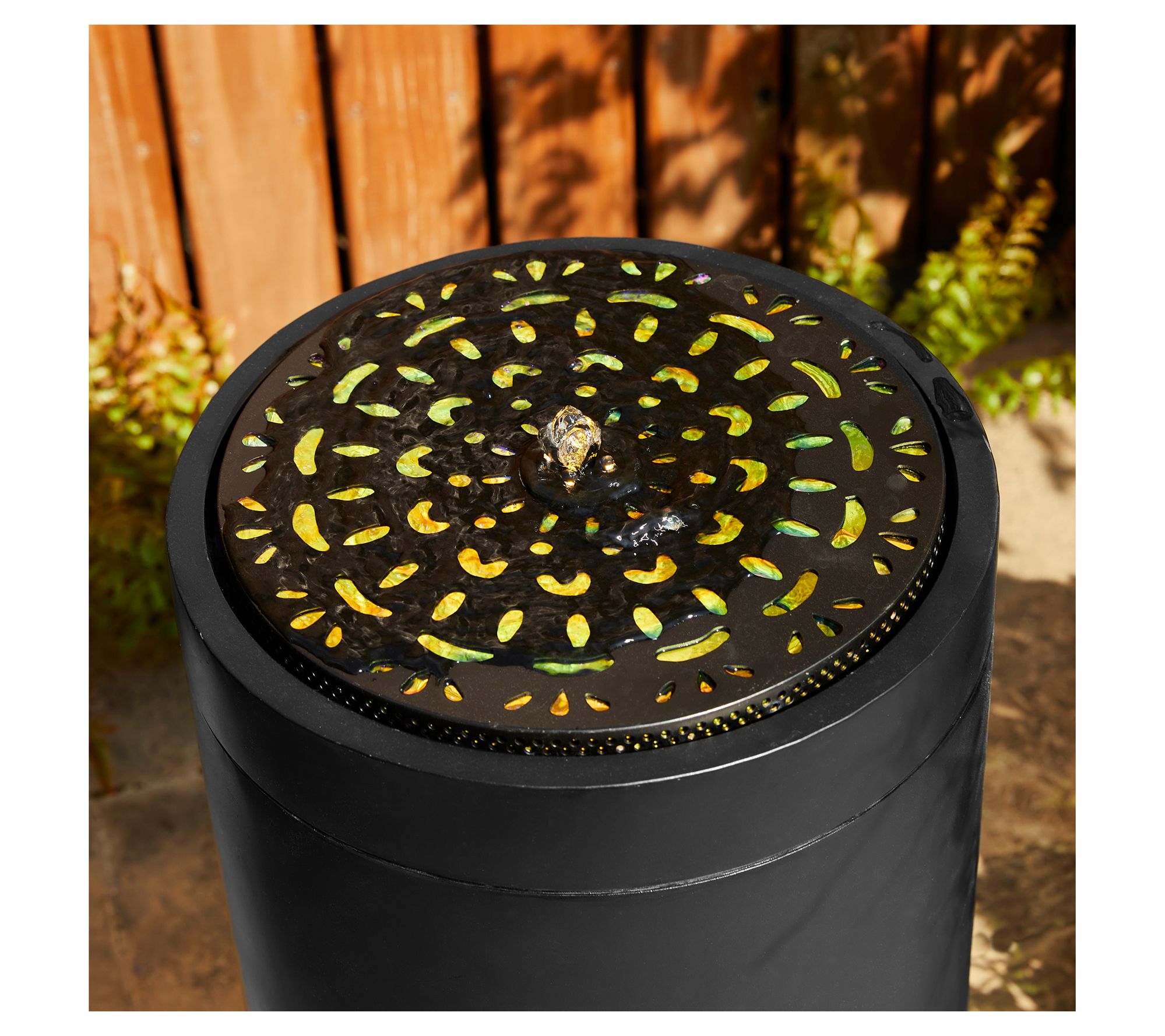 Create a serene and captivating outdoor escape with this metal fountain that's elegantly designed with intricate cutout patterns. The soft glow of LED lights creates enchanting shadows, turning any space into a tranquil retreat. You'll love the peaceful sound of cascading water, perfect for unwinding after a long day. From Glitzhome.