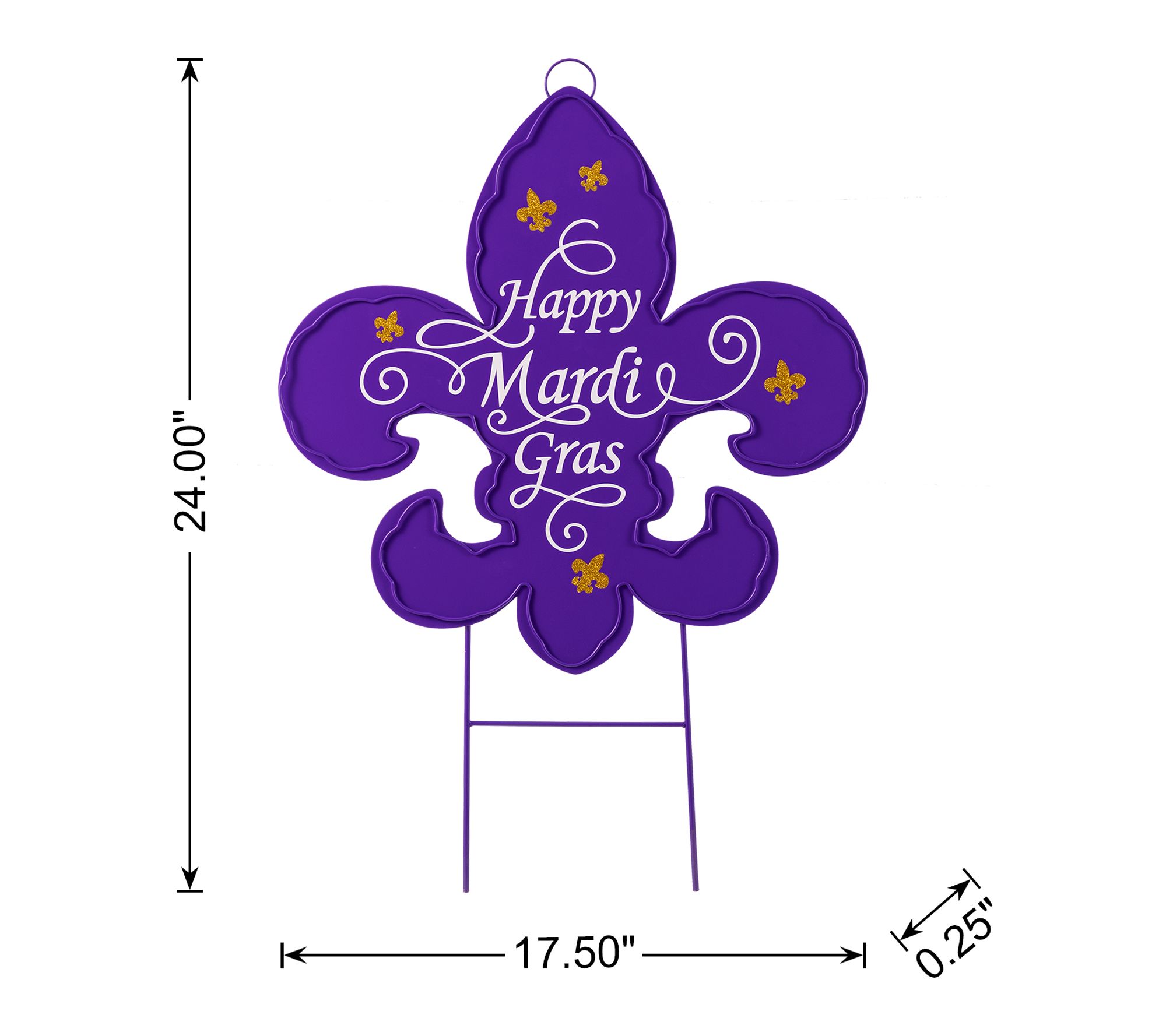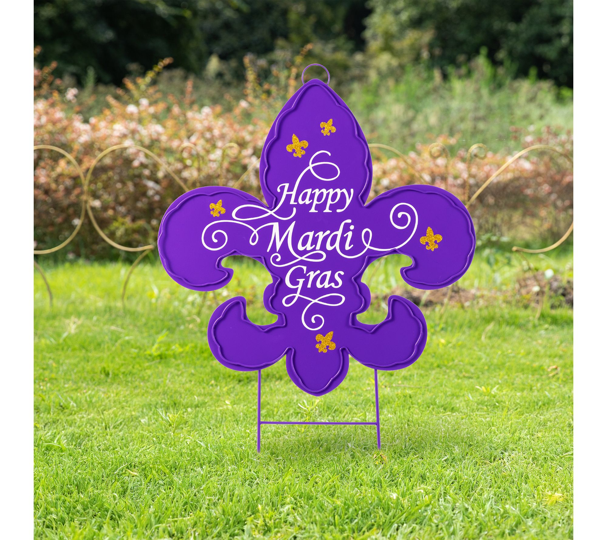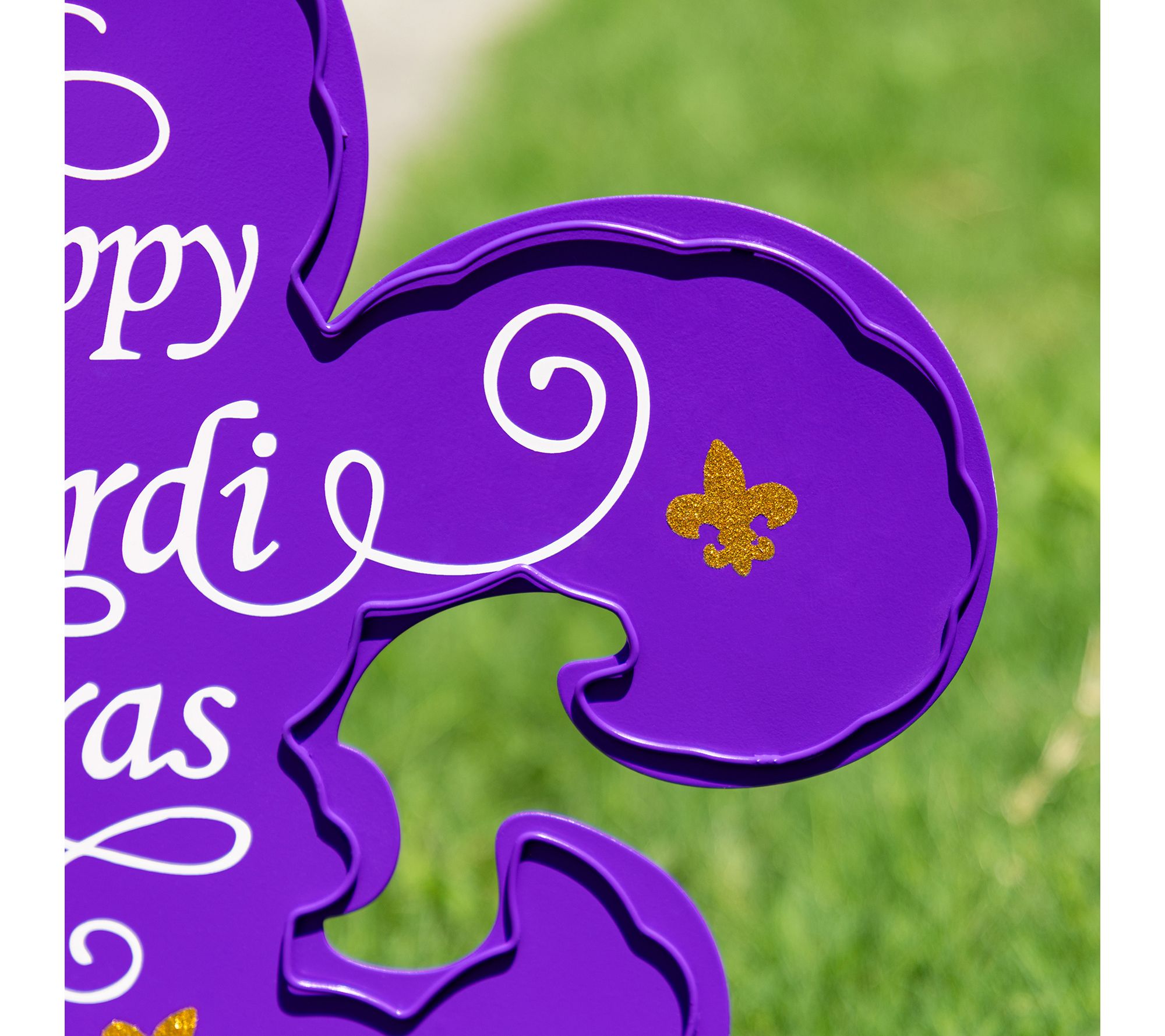 Make your Mardi Gras sparkle with this vibrant metal garden stake, showcasing a bold purple fleur-de-lis accented by elegant white script and shimmering goldtone flecks. Instantly add festive flair to your outdoor space as you welcome guests and neighbors to join in the revelry. From Glitzhome.