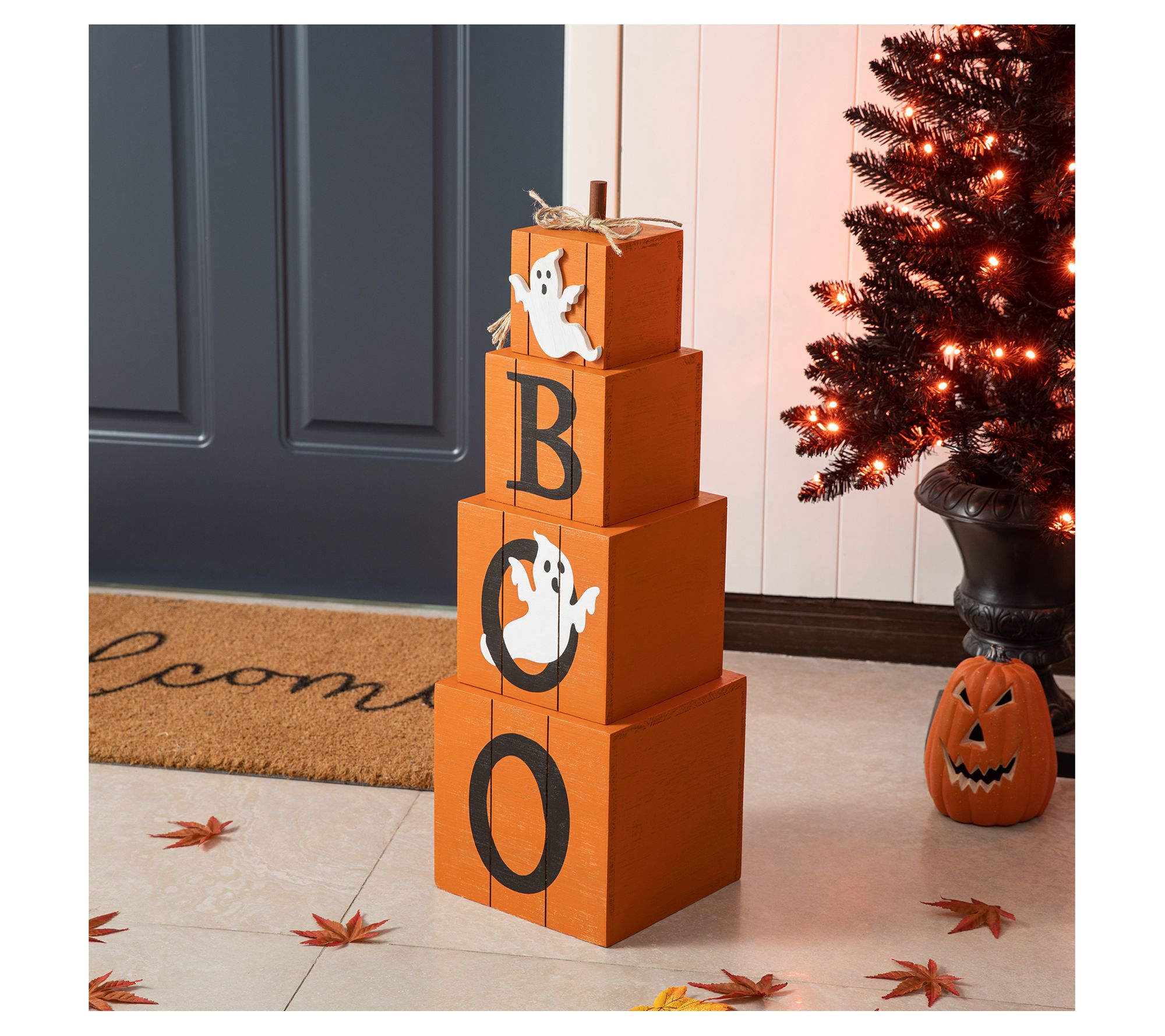 Add a touch of seasonal charm to your home with the Glitzhome 25.5"H reversible porch decor. This unique piece features a bilingual design that effortlessly transitions from Halloween to Fall, providing a playful and festive atmosphere. From Glitzhome.