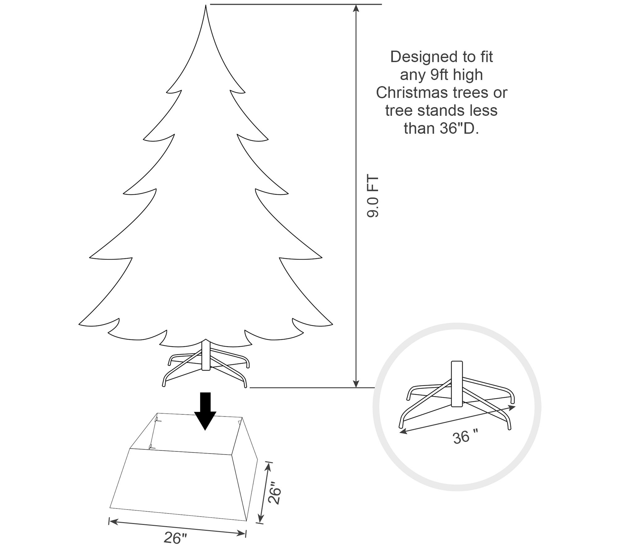 • Designed to fit any 9' high Christmas trees or tree stands less than 36" diameter, not included