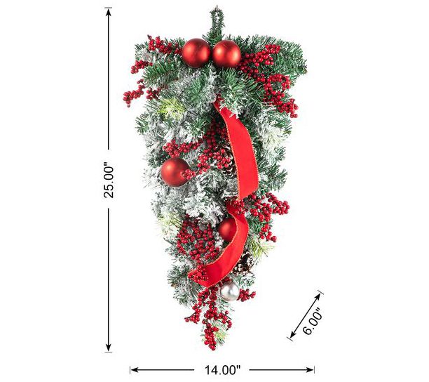 Glitzhome 25"H Berry, Ornament and Pinecone Ribon Teardrop