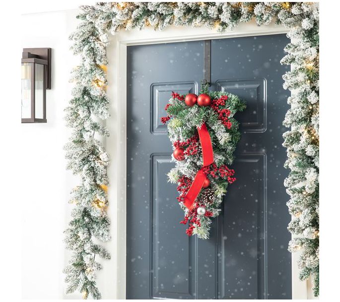 Add a cheerful accent to your wall with this festive swag decorated with an elegant arrangement of colorful berries, pine cones, and ornaments. From Glitzhome.