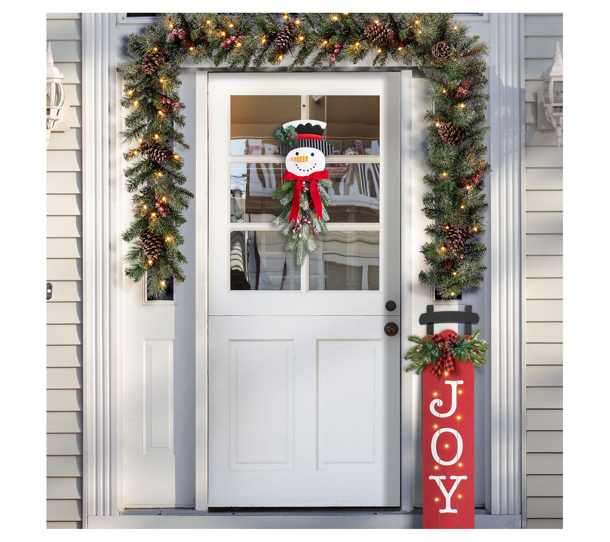 Glitzhome 25"H Greenery Snowman Door Hanger
